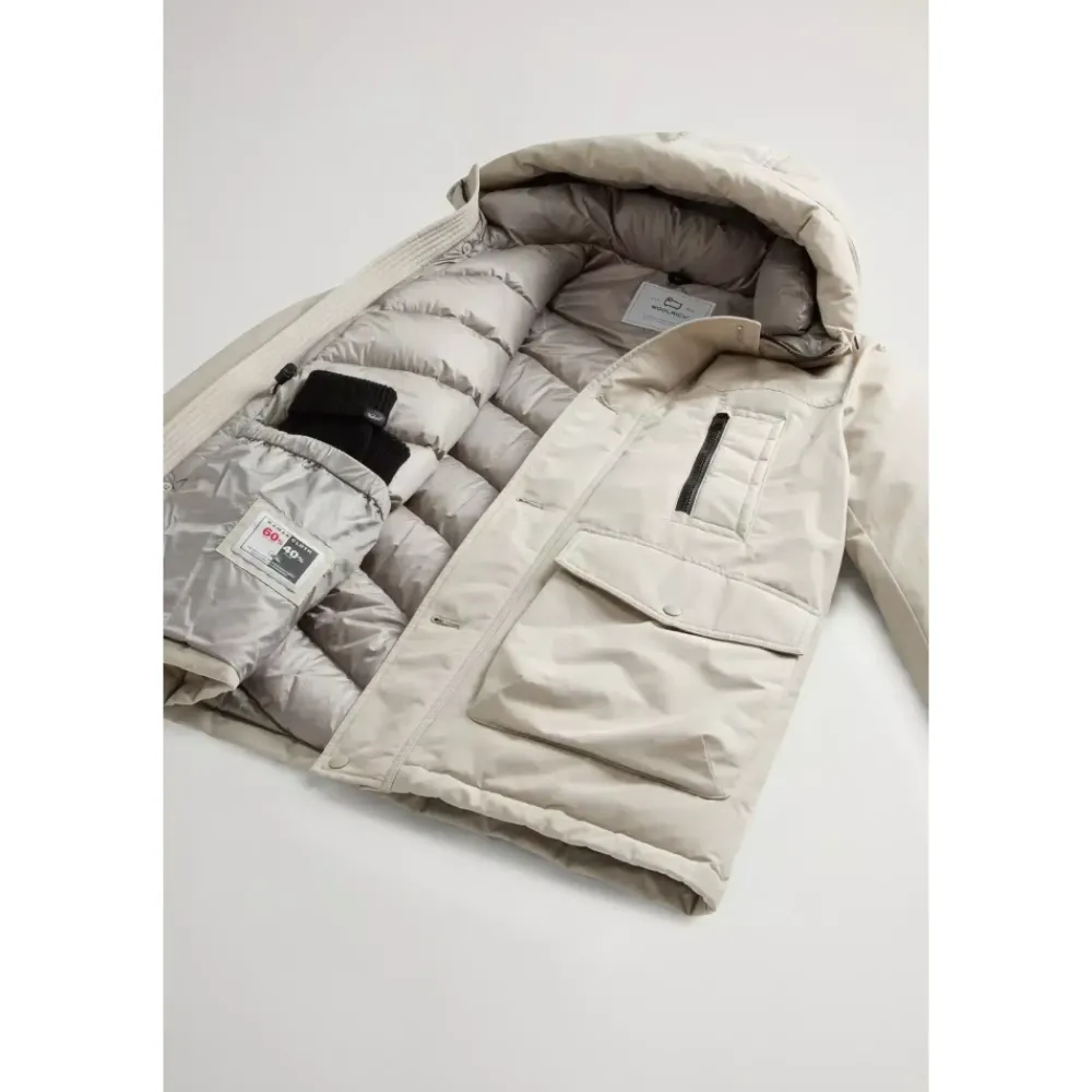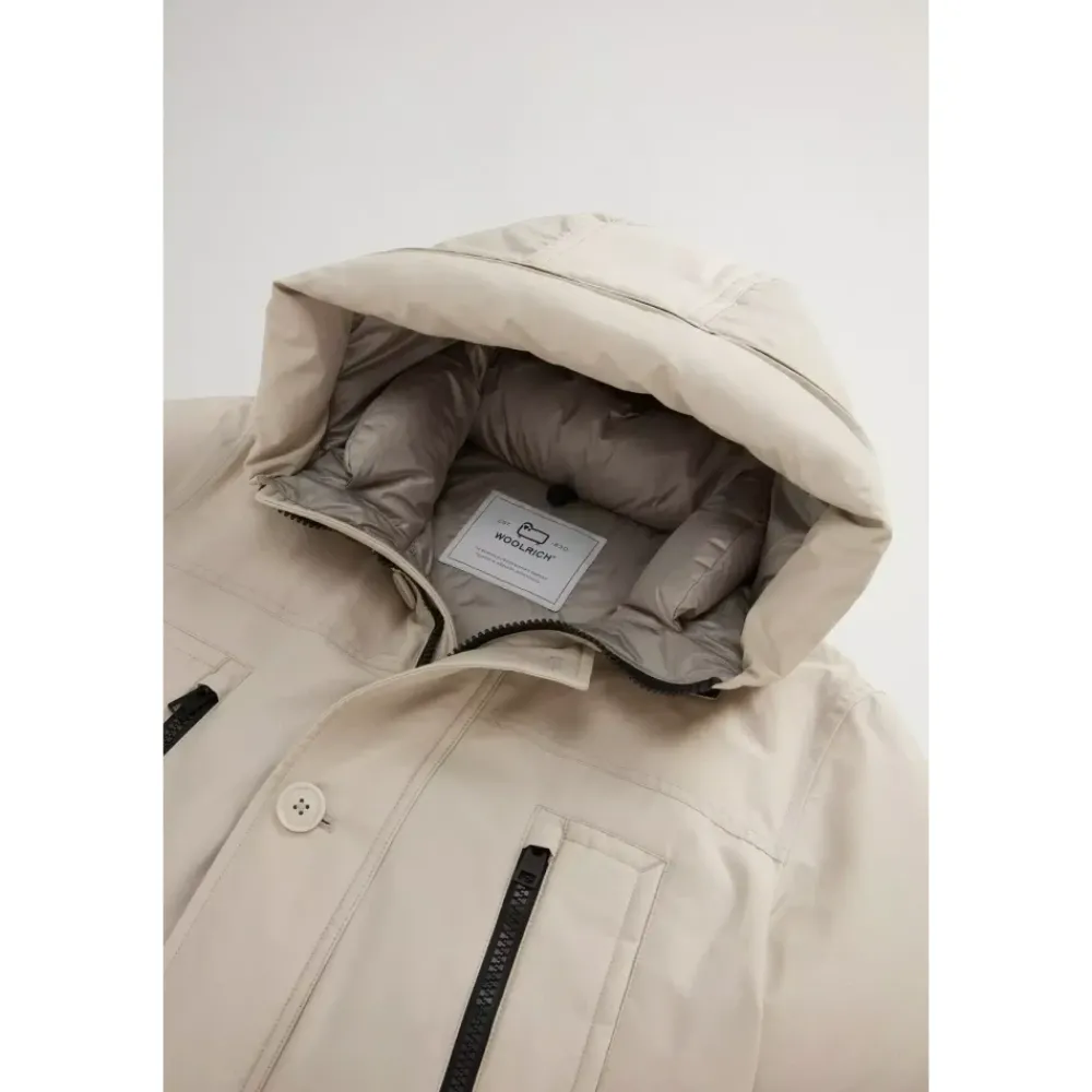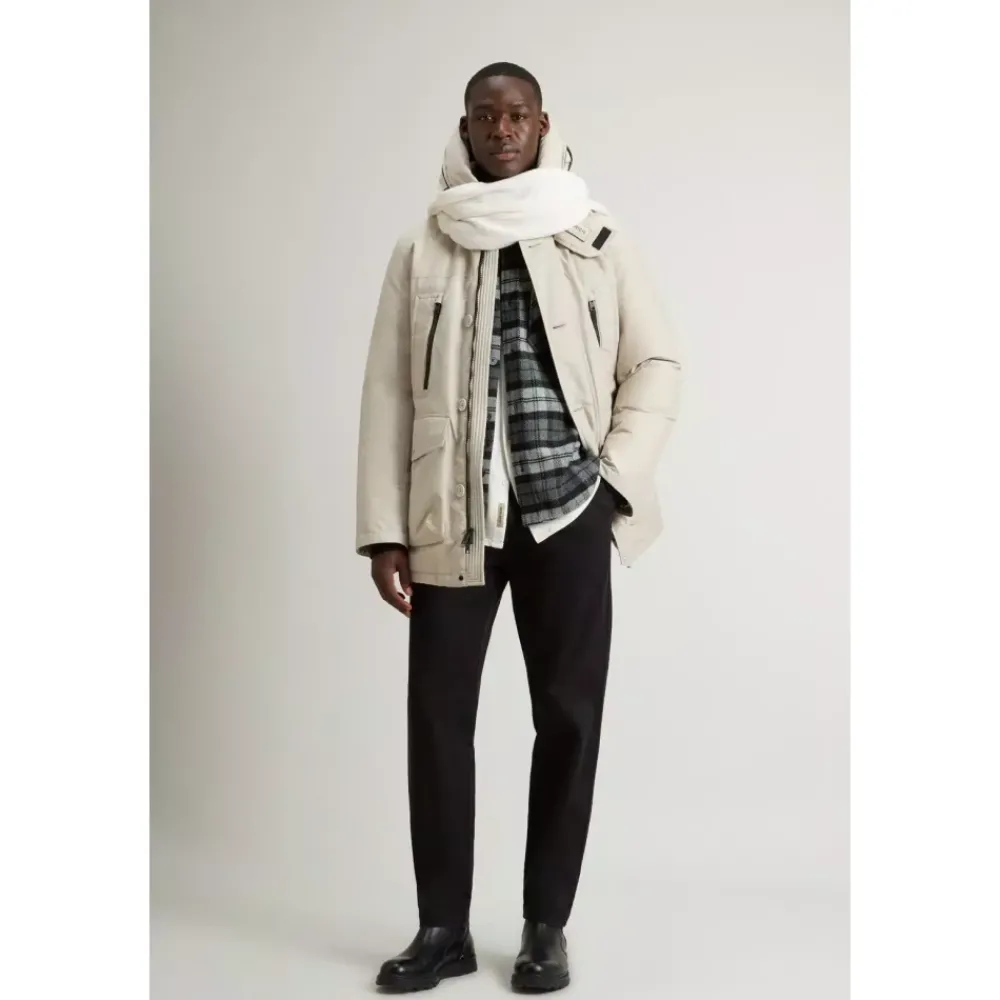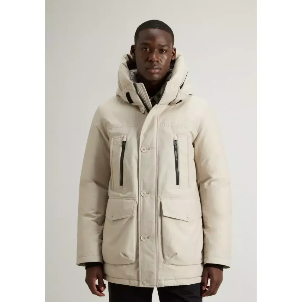 De Woolrich Arctic Parka Evolution is een update van de iconische Arctic Parka van het merk, met technische Ramar-stof en donsisolatie voor betrouwbare bescherming tegen koud weer. Het combineert een verborgen sluiting en multifunctionele zakken met verstelbare details voor praktisch dagelijks gebruik. Belangrijkste kenmerken: Grijs | Duif | Ramar-stof | Waterafstotend | Windbestendig | Isolerende donsvulling | Verborgen knoop- en ritssluiting | Capuchon met rits om logo te onthullen of te verbergen | Intern trekkoord in de taille | Dubbele bovenste zakken met ritsen | Lagere klepzakken met drukknopen | Binnenzakken | Geribbelde binnenmanchetten | Hoge kraag | Capuchon met logo-ritssluiting | Verborgen sluiting | Dubbel zakontwerp | Afmetingen en pasvorm: Regular fit | Samenstelling en onderhoud: Buitenkant: 60% katoen, 40% polyamide | Voering: 100% polyamide | Vulling: 90% grijs eendendons, 10% veren | Machinewas koud (max. 30°C) op een fijnwasprogramma of professioneel chemisch reinigen; apart wassen. Niet bleken. Niet in de droogtrommel. Niet strijken.