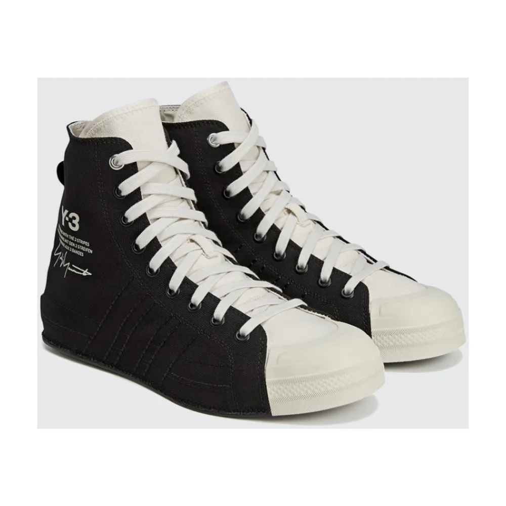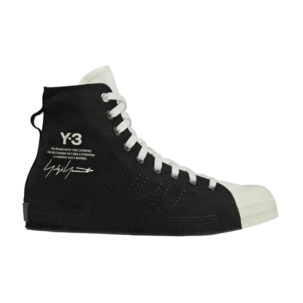 De Y-3 Nizza Hi herinterpreteert een klassiek courtsilhouet met een high-top profiel en een canvas bovenwerk dat doorloopt tot de buitenzool, waarbij streetwearstijl wordt gecombineerd met lichtgewicht demping. Belangrijkste kenmerken: Zwart | Nero | Textiel | Lightstrike lichtgewicht demping | Dagelijks comfort | Vetersluiting | Uitneembare Lightstrike middenzool / uitneembare inlegzool | Rubberen buitenzool | High-top silhouet | Canvas bovenwerk dat doorloopt tot de buitenzool | Y-3 logo graphic aan de zijkant | Kenmerkend detail op de hiel | Afmetingen & pasvorm: Valt normaal qua maat | Samenstelling & onderhoud: Textiel (bovenwerk) | Rubber (zool) | Suède (voering/afwerking)