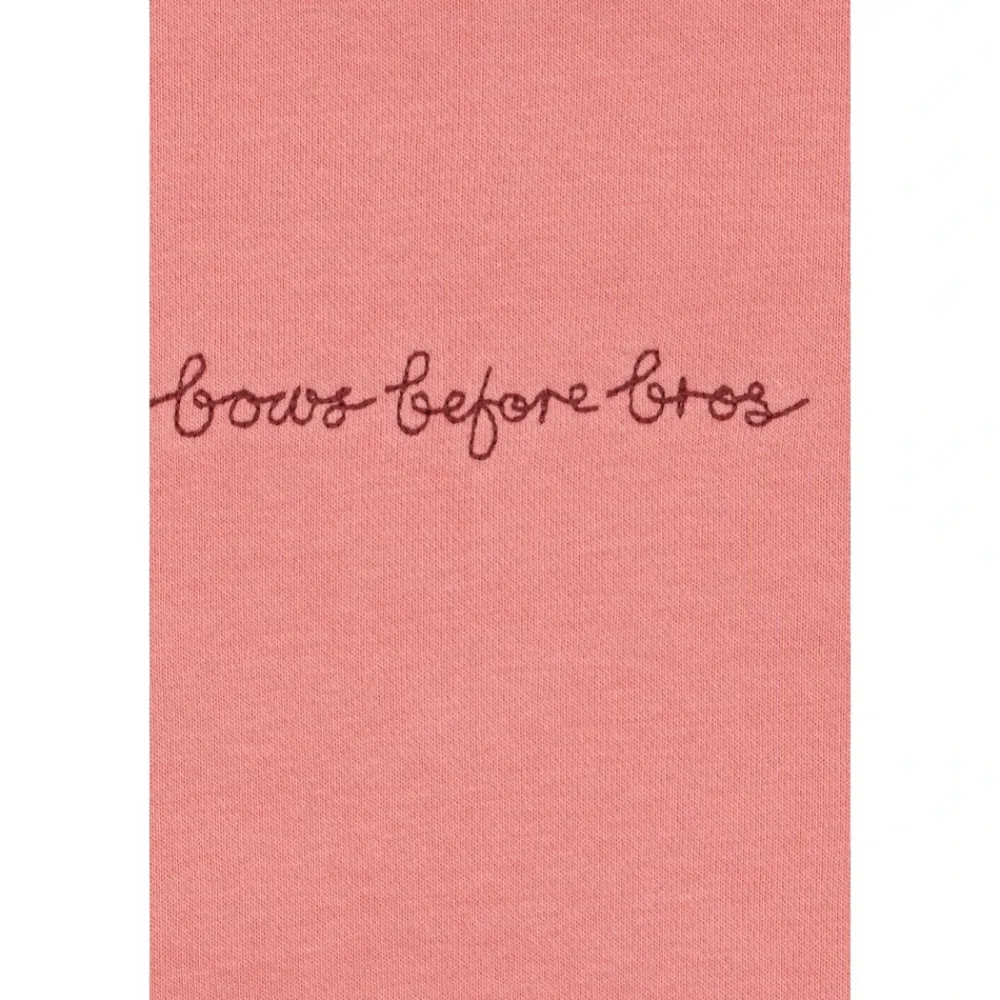 De Lou Bow Sweatshirt van Konges Sløjd heeft handgeborduurde tweekleurige strikken en een subtiele “bows before bros” inscriptie voor een speelse, verfijnde look. De katoenmix en klassieke snit zorgen voor zachtheid en draagbaarheid voor elke dag. Belangrijkste kenmerken: Aardbeienijs | Katoen | Lichtgewicht | Zacht | | Huidvriendelijk | Geribbelde boorden | Ronde hals | Lange mouwen | Geribbelde manchetten en zoom | All-over tweekleurige geborduurde strikken | Geborduurde “bows before bros” inscriptie | Afmetingen & pasvorm: Relaxte pasvorm | Samenstelling & verzorging: 90% katoen, 10% polyester | Machinewas koud.