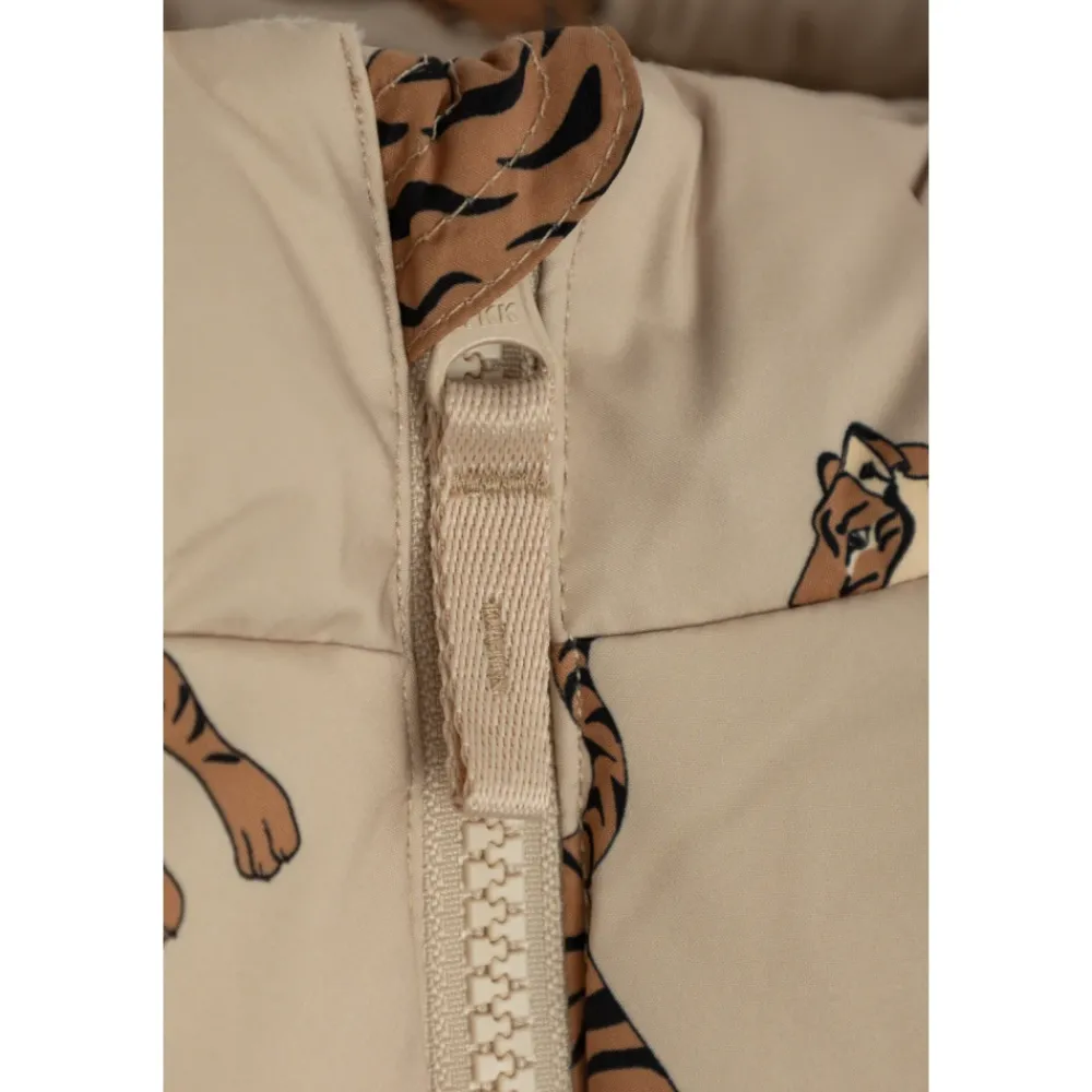 Introductie van de geïsoleerde kinderjas van KONGES SLØJD, ontworpen voor jongens van 4 tot 14 jaar. Dit exclusieve product maakt indruk met zijn klassieke, eenvoudige snit en uitzonderlijk design dat elegantie combineert met functionaliteit. De jas is gemaakt van 100% POLYESTER en benadrukt de aanpak van het merk. Het buitenmateriaal is en bestand tegen winterse weersomstandigheden, wat zorgt voor warmte en comfort op koudere dagen. De geïsoleerde voering biedt extra bescherming tegen lage temperaturen. De beige kleur van de jas harmonieert met een print van tijgers in verschillende houdingen, wat een uniek karakter toevoegt. Het patroon is zorgvuldig bedrukt en weerspiegelt vakmanschap van hoge kwaliteit. De jas heeft een geïntegreerde capuchon en elastische manchetten om warmte vast te houden. Het product sluit met een stevige beige rits, wat duurzaamheid en gebruiksgemak garandeert. Twee insteekzakken bieden ruimte voor het opbergen van kleine spullen. WAAROM ZOU U DIT PRODUCT MOETEN KOPEN? * Elegant en functioneel design * Gemaakt van materialen * Geïsoleerde voering die thermisch comfort garandeert * Uniek tijgerpatroon dat onderscheidend is * Stevige rits en twee praktische zakken