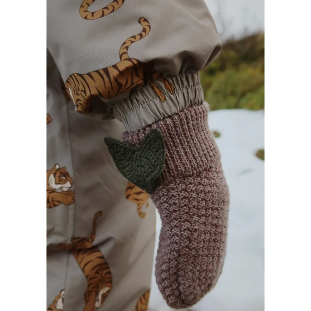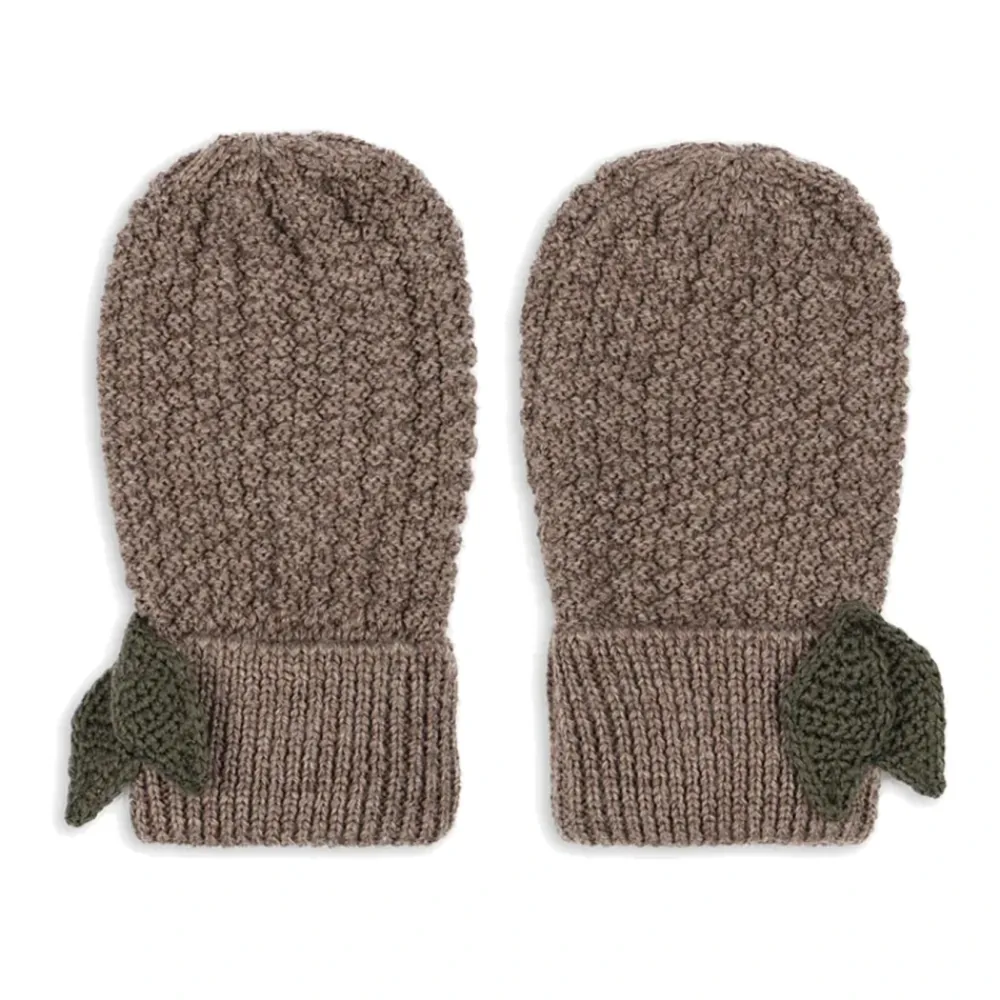 Konges Sløjd Fruity Wanten zijn zachte wanten van merinowol, ontworpen voor dagelijkse warmte en comfort, met een subtiel groen bladaccent en een klassieke parelbreisteek. Belangrijkste kenmerken: Bunny brown melange | Merinowol | Warm | Ademend | Zacht | Praktisch duimstuk | Geribbelde boord voor een goede pasvorm | Parelbreipatroon | Wanten vorm met afgeronde afwerking | Handgebreid groen blad op de boord | Minimalistisch ontwerp zonder zichtbare logo’s | Afmetingen & pasvorm: Normale pasvorm | Kies je gebruikelijke maat | Samenstelling & onderhoud: 100% merinowol | Machinewas 30°C
