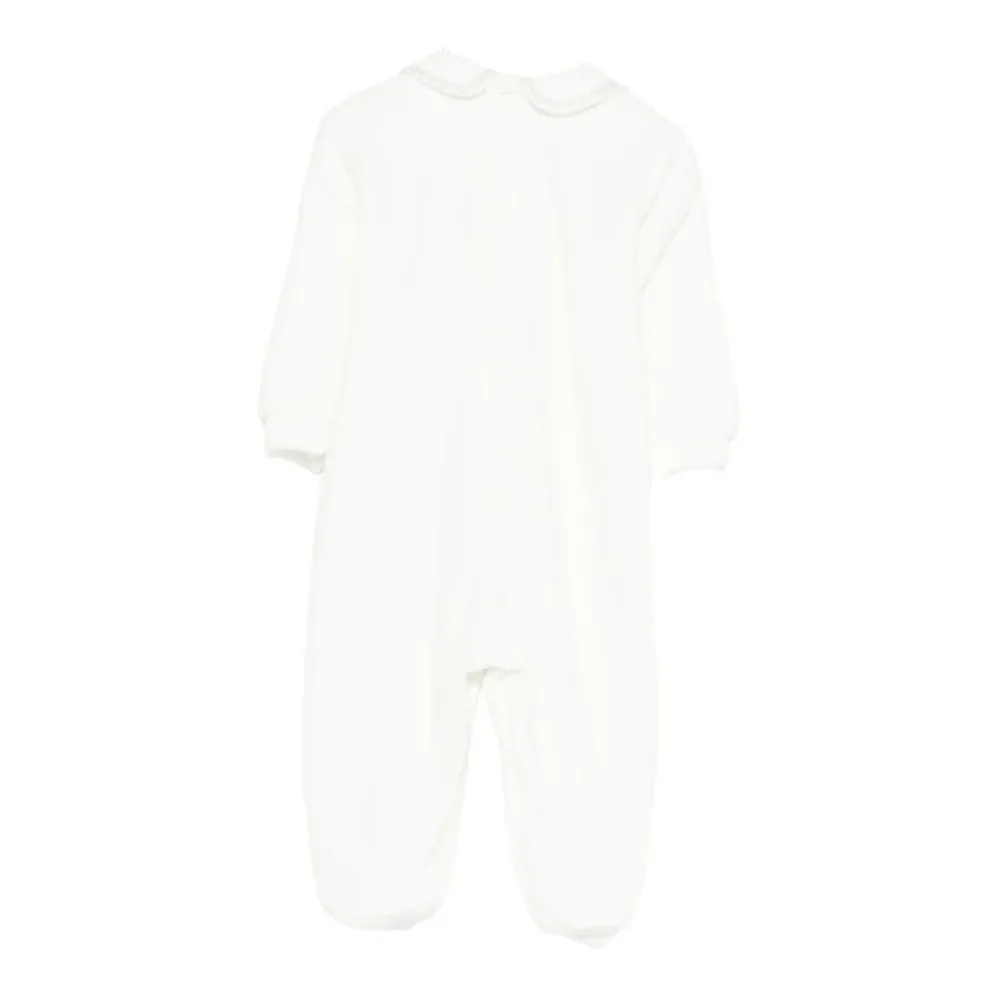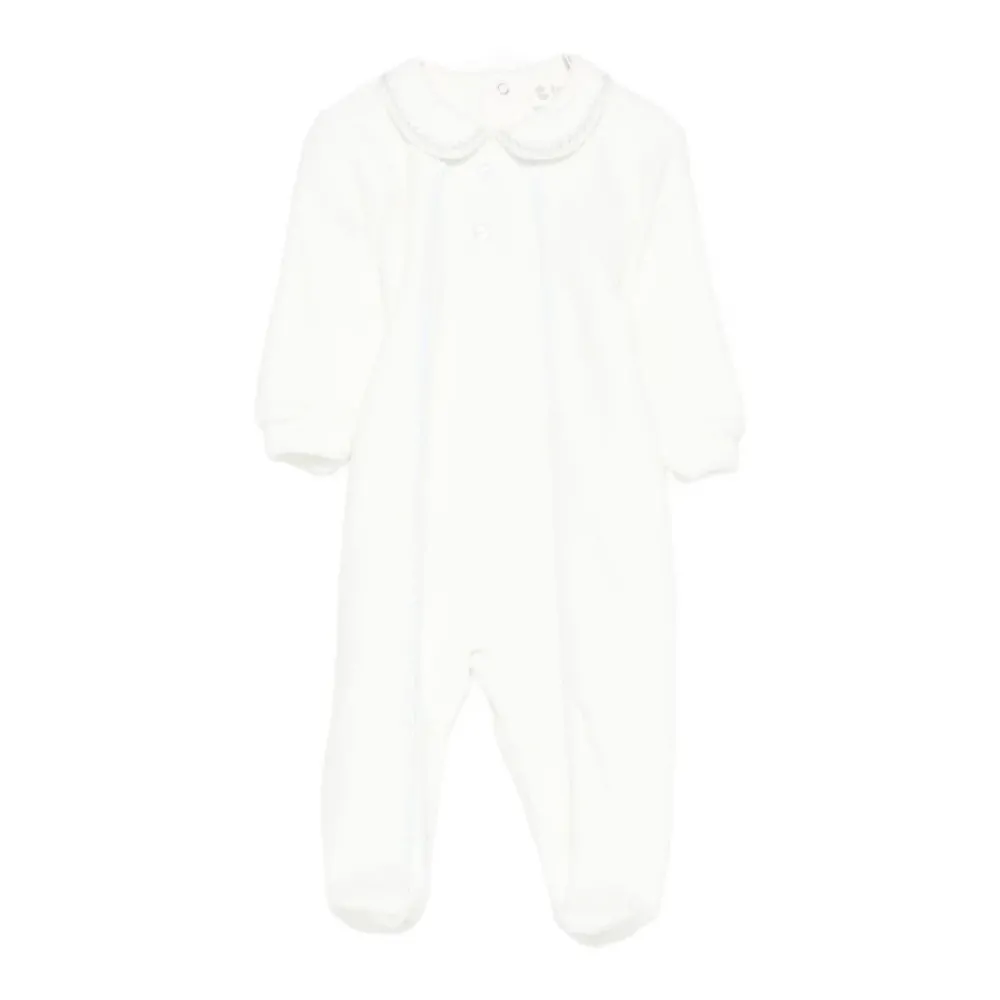 Kleed je kleine heer in stijl met deze LALALU-robe met een klassieke witte Peter Pan-kraag, drukknoopsluiting, lange mouwen en voetjes. Gemaakt van 100% stof.