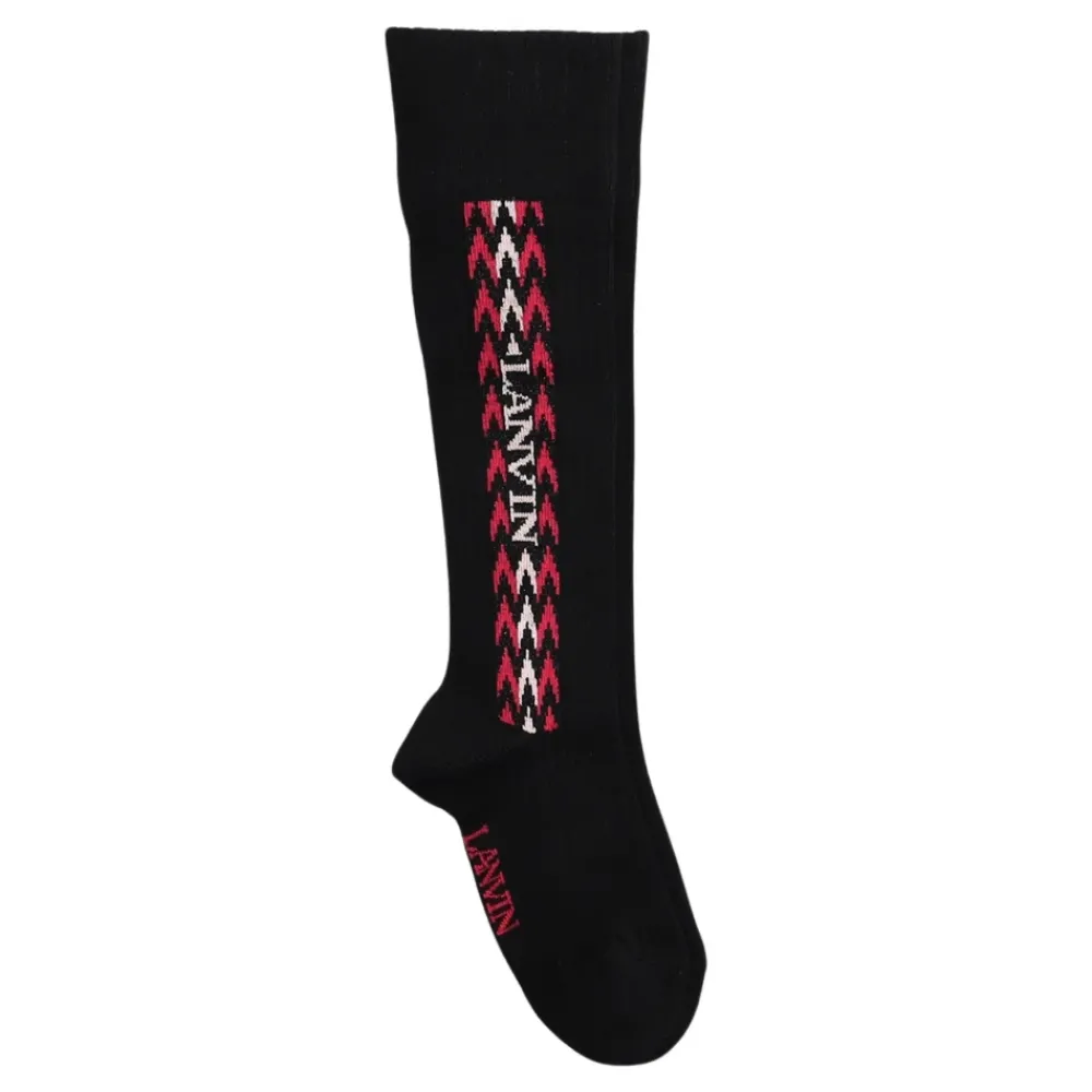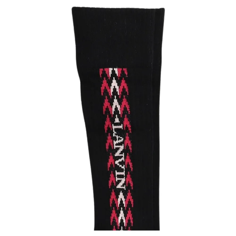 Lanvin geribbelde badstof sokken combineren een zachte badstoftextuur met een jacquard logo-inzet voor dagelijks gebruik, en bieden kenmerkende merkborduring en comfortabele demping. Belangrijkste kenmerken: Zwart | Katoen | Geribbelde badstof | Jacquardweefsel | Contrasterende logo-inzet | Samenstelling & verzorging: 76% katoen | 20% polyamide | Binnenstebuiten wassen op 30°C fijne was. Niet bleken. Laag drogen in de droogtrommel.