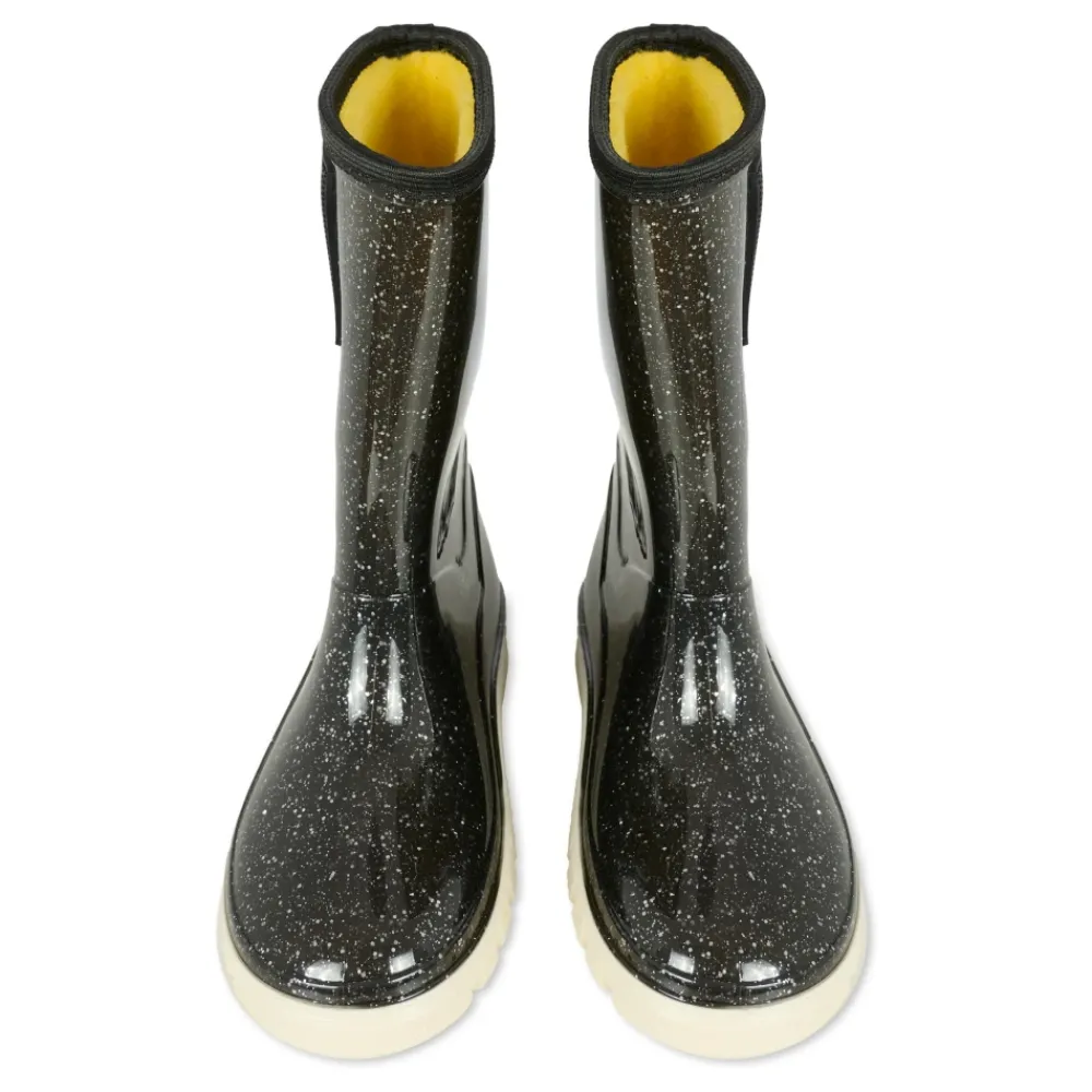 Laat je kleintje in stijl spetteren met deze zwarte regenlaarzen van Little Marc Jacobs. Voorzien van rubberen zolen, zachte faux fur voering en een zwarte rubberen logopatch, zijn deze laarzen zowel praktisch als modieus. Gemaakt van 100% synthetische materialen.