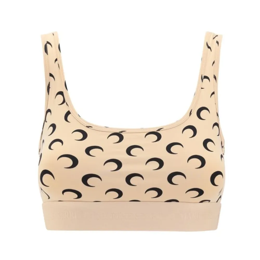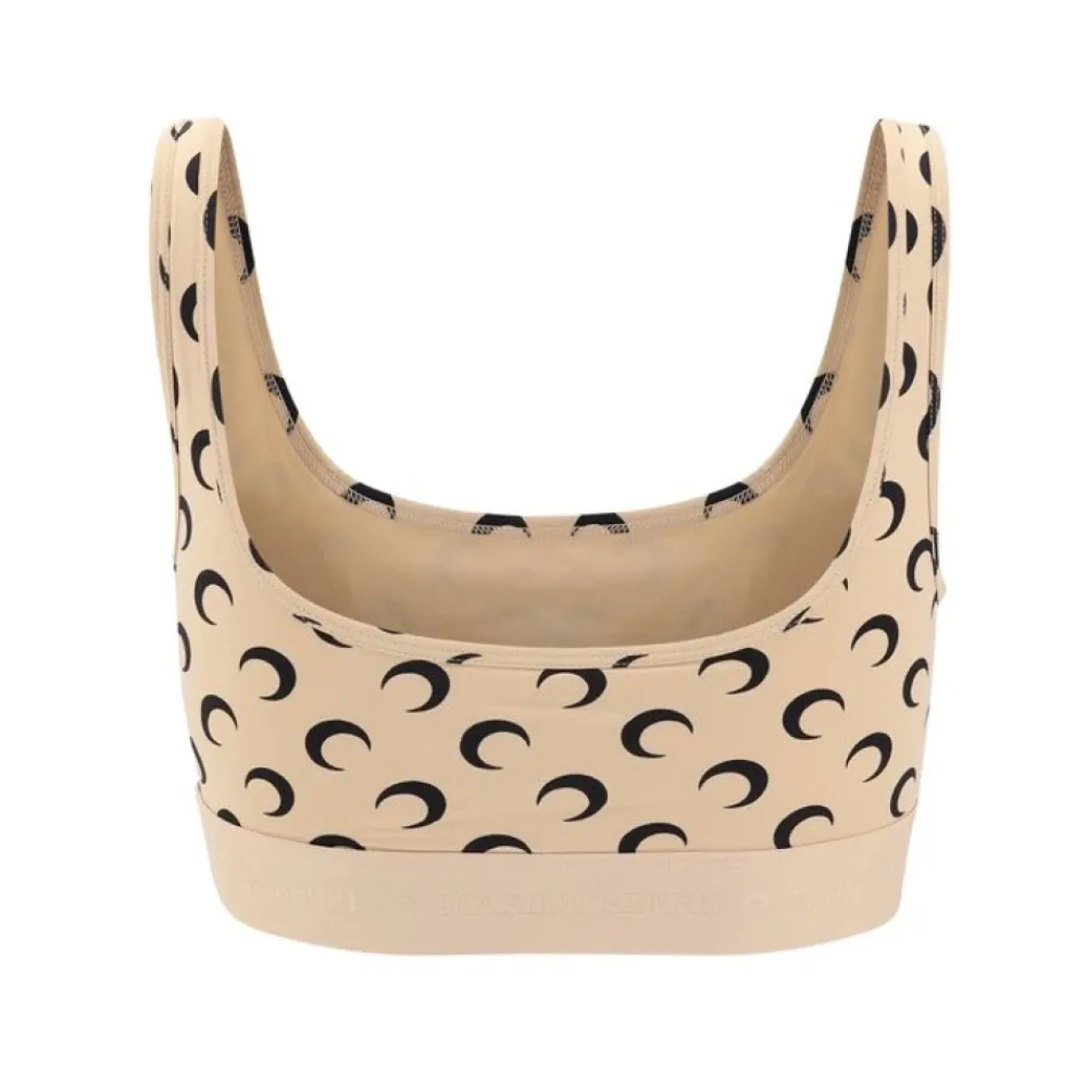 Upgrade je sportgarderobe met de Marine Serre Top voor vrouwen. Dit sportieve ontwerp heeft een elastische buste lijn versierd met het iconische monogram van het merk. Het kenmerkende maanpatroon wordt herhaald over het gehele oppervlak, wat zorgt voor een moderne visuele uitstraling. De strakke pasvorm verbetert je silhouet, waardoor het perfect is voor een dynamische en stijlvolle look.