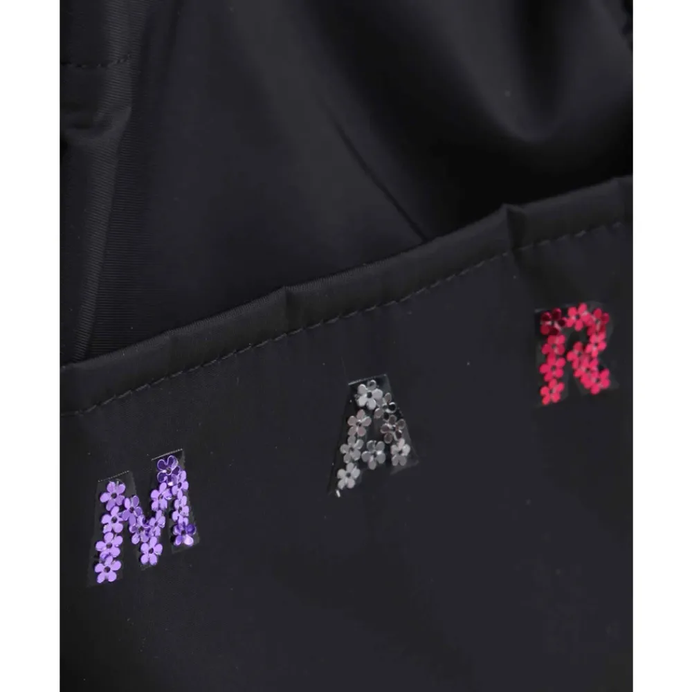 Marni-tas van nylon, met twee bovenste handvatten voor handig en praktisch dragen. Het heeft een functionele voorzak en een bedrukt logo aan de voorkant dat een onderscheidende touch toevoegt aan het essentiële ontwerp.