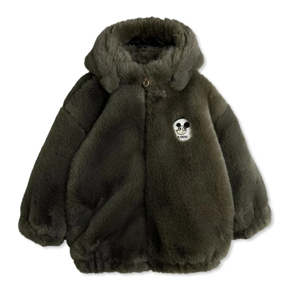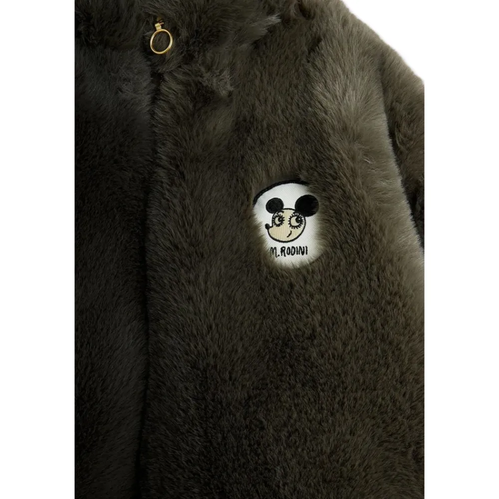De Ritzratz Patch Imitatiebont Jas van Mini Rodini combineert een oversized, wolkachtig silhouet met een zachte, dichte afwerking van imitatiebont. Een wijde capuchon en een subtiel retro geborduurd logo voegen karakter toe aan een minimalistische buitenlaag. Belangrijkste kenmerken: Groen | Polyester | Warm | Capuchon | Gouden ringknopsluiting | Oversized silhouet | Losjes vallende mouwen | Wijde capuchon | Geborduurd retro logo met muisjesmotief | Gouden ringknopdetail | Minimalistische afwerking | Afmetingen en pasvorm: Oversized pasvorm | Samenstelling en verzorging: 100% polyester | Machinewas op 40°C. Niet in de droger; borstel het imitatiebont voorzichtig om het volume te herstellen.