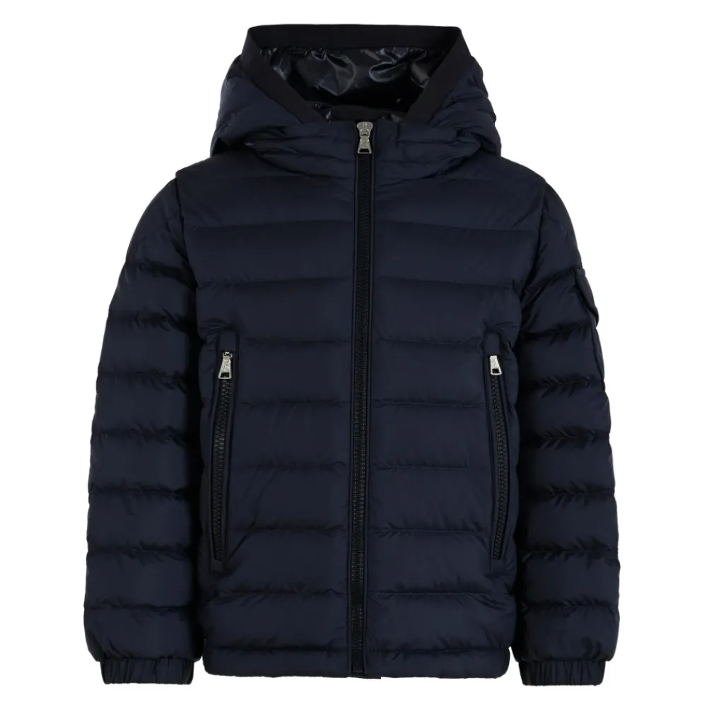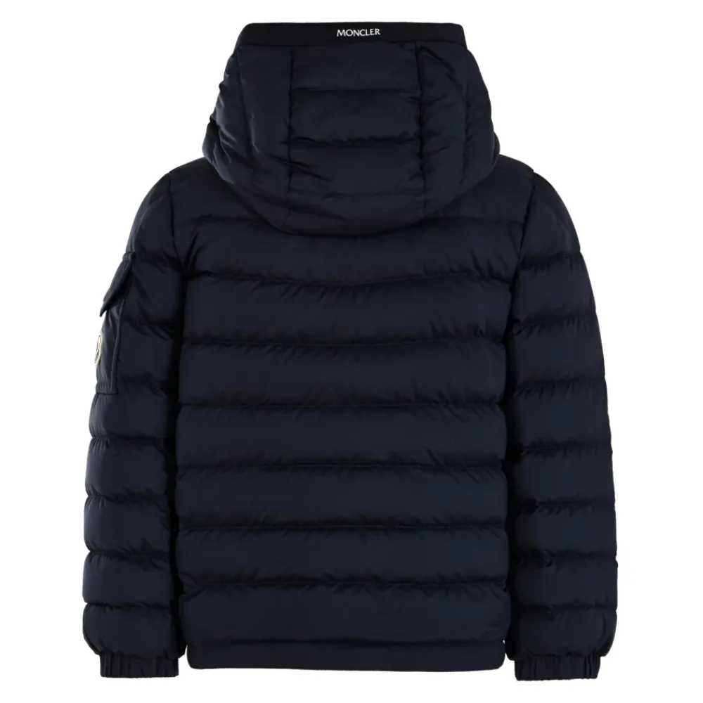 Blijf warm en stijlvol deze winter met de Moncler Kids blauwe 100 gram donsjack. Deze luxe jas is voorzien van padding, quilten, lange mouwen, een capuchon, ritssluiting aan de voorkant, zijzakken met ritssluiting, een mouwzak en elastische manchetten en zoom. Compleet met een iconisch logopatch op een mouw. Gemaakt van 100% polyester. Alleen handwas.