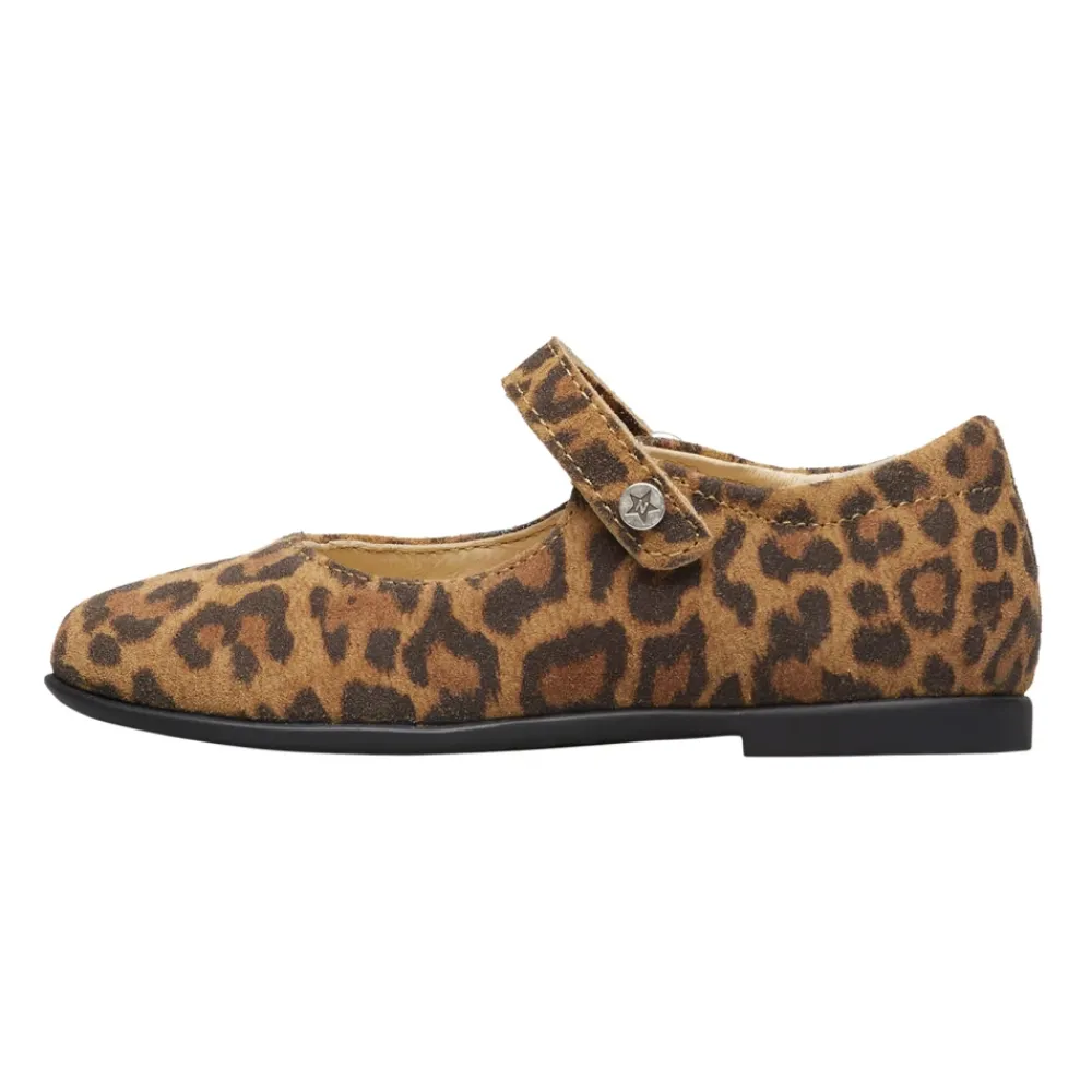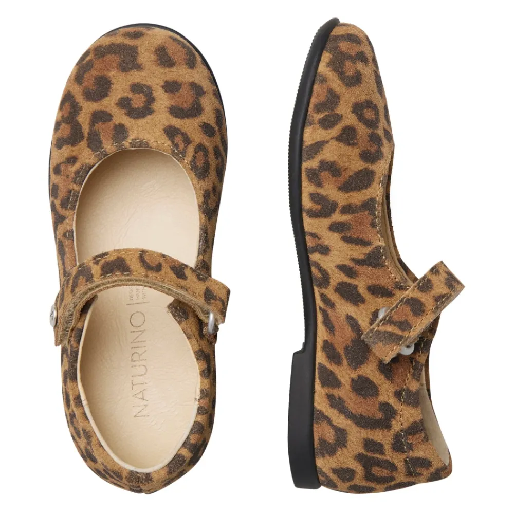 De Naturino Darling Ballerina combineert zacht suède met een opvallend bovenwerk met dierenprint en een veilige band over de wreef voor geklede, alledaagse kleding. Belangrijkste kenmerken: Bruin | Suède | Leren voering | Leren binnenzool | Rubberen buitenzool | Bovenwerk met dierenprint | Sluiting met band over de wreef | Samenstelling & verzorging: Suède (bovenwerk) | Leer (voering, binnenzool) | Rubber (buitenzool)