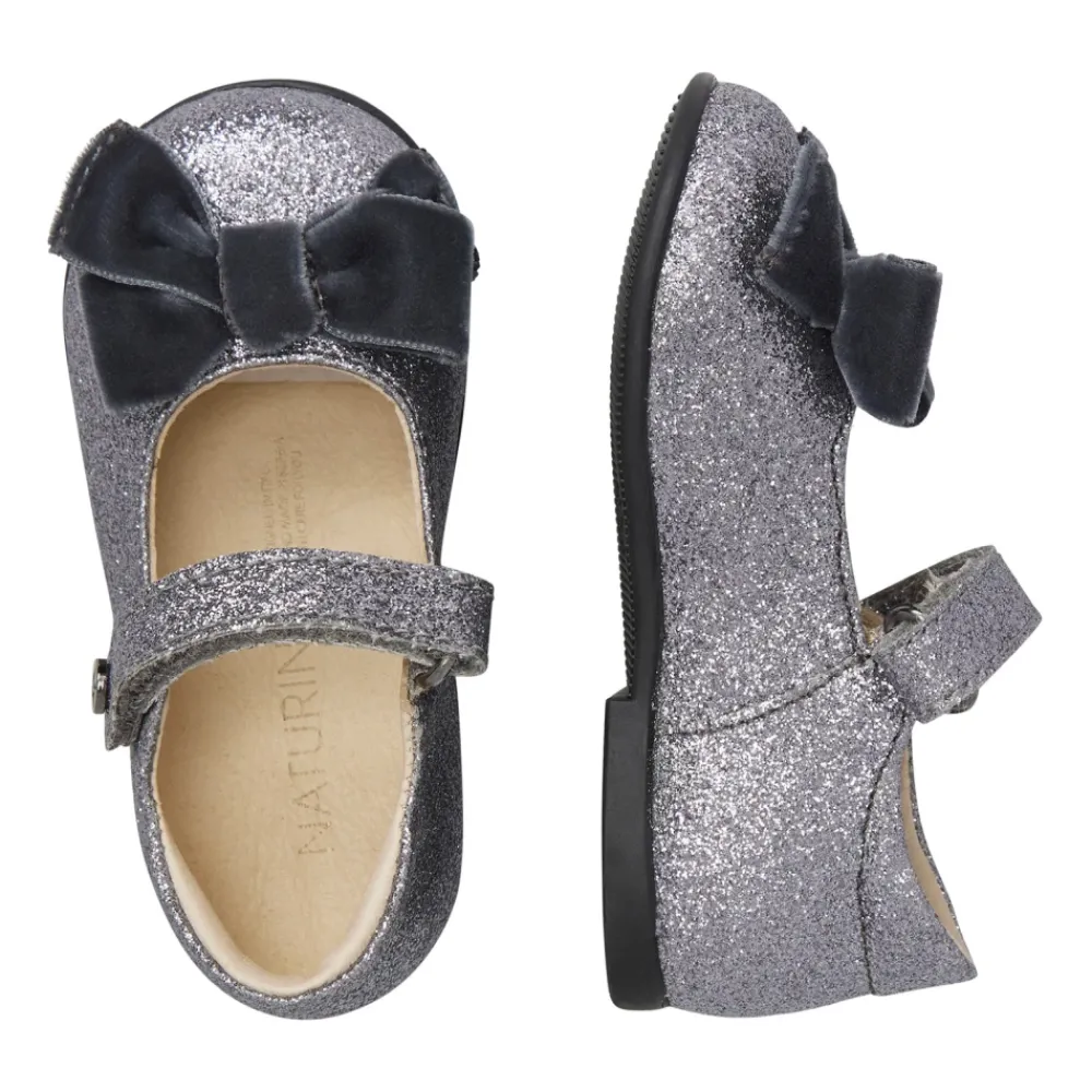De Naturino Glitter Fabric Ballerina combineert een sprankelend glitter bovenwerk met een grote fluwelen strik en een veilige wreefband voor comfortabel dagelijks gebruik. Het ontwerp combineert een ronde neus, leren binnenzool en een rubberen zool voor grip en comfort. Belangrijkste kenmerken: Grijs | Zilver | Glitter stof | Wreefband | Rubberen zool | Leren voering en binnenzool | Ronde neus | Grote fluwelen strik | Samenstelling & onderhoud: Glitter stof | Leren voering | Leren binnenzool | Rubberen zool