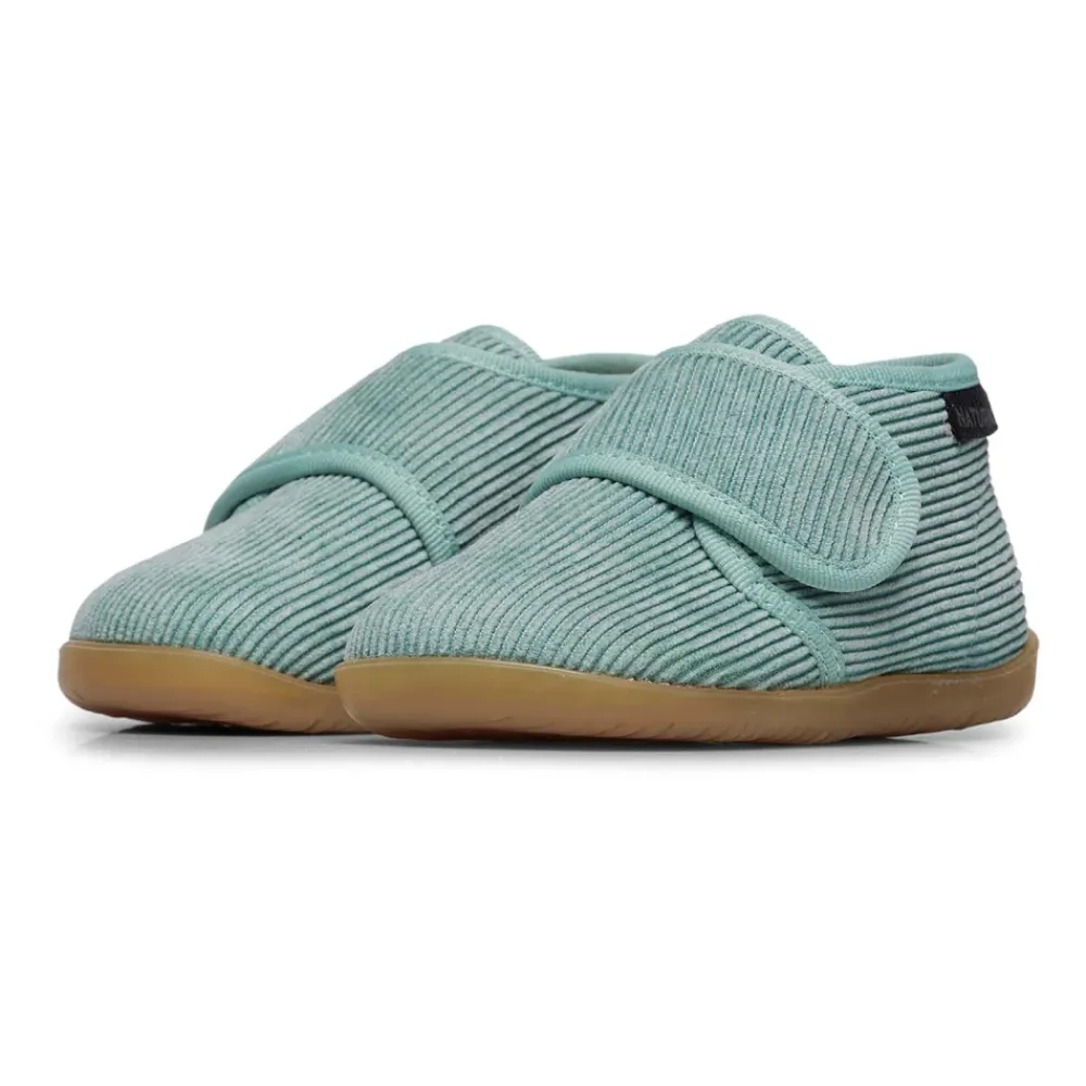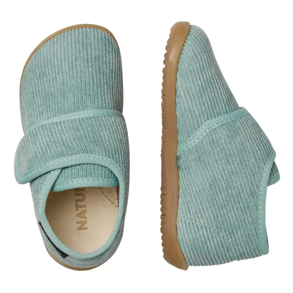 Naturino HOME sloffen combineren zacht comfort en praktische grip voor binnenshuis. Het suède ontwerp heeft een klittenbandsluiting en een leren binnenzool voor comfortabel, gemakkelijk te dragen schoeisel. Belangrijkste kenmerken: Groen | Salie | Suède | Antislip rubberen zool | Gripvaste buitenzool | Klittenbandsluiting | Leren binnenzool | Geribbelde fluwelen bovenkant | Samenstelling & onderhoud: Suède bovenkant | Leren binnenzool | Rubberen zool