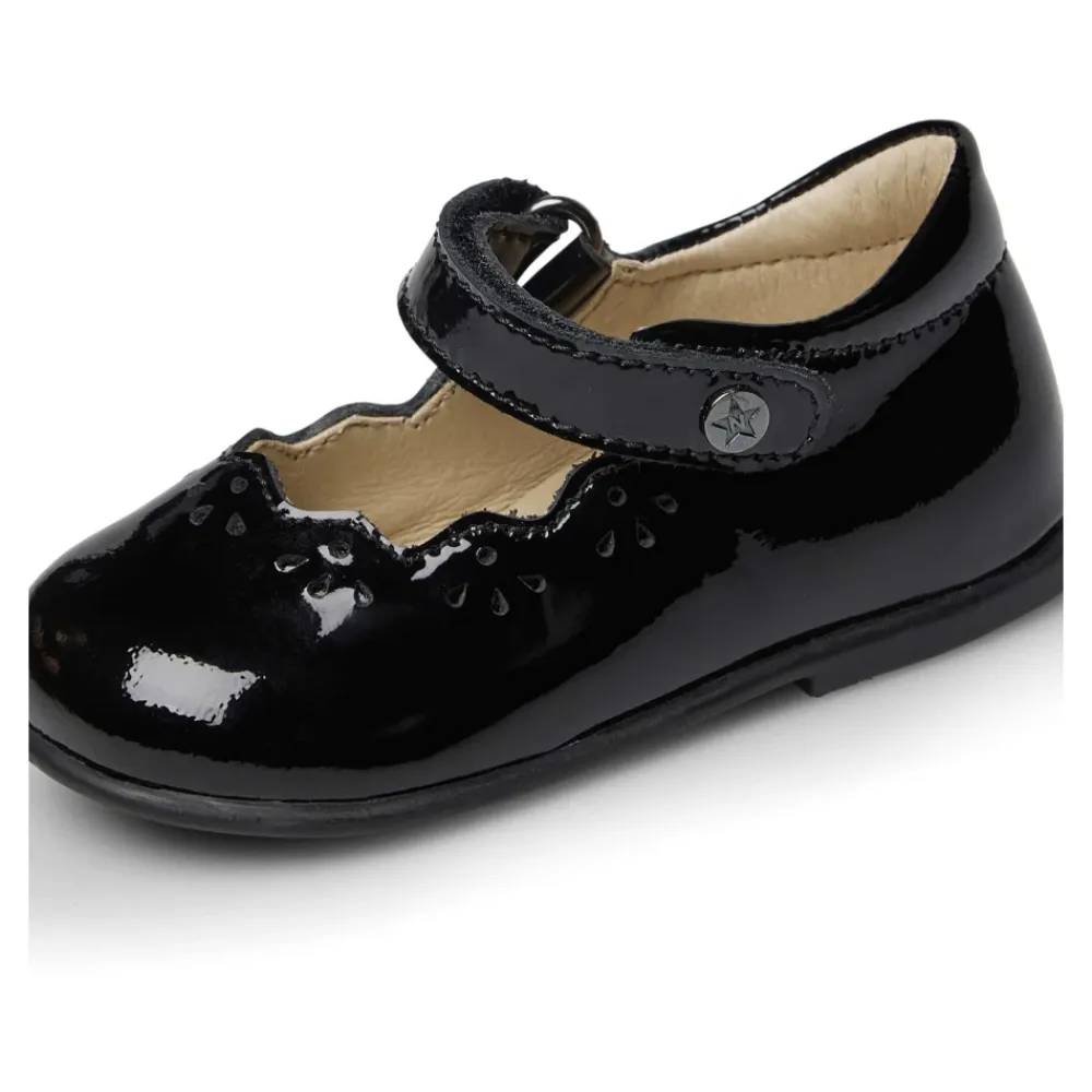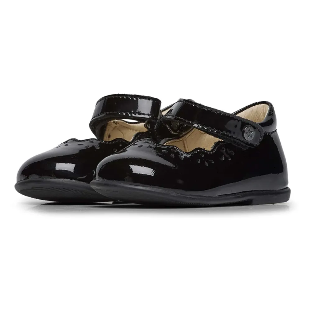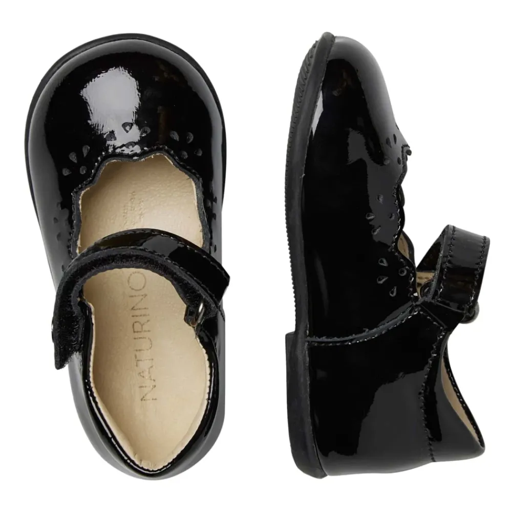 De Naturino OLYA Ballerina combineert een glanzend bovenwerk van lakleer met een gevormde, geperforeerde rand en een band over de wreef voor een stevige, elegante pasvorm. Het ontwerp is geschikt voor geklede gelegenheden, maar blijft comfortabel voor dagelijks gebruik. Belangrijkste kenmerken: Zwart | Lakleer | Band over de wreef | Leren voering | Rubberen buitenzool | Gevormde/geschulpte rand | Geperforeerde details | Laag ballet silhouet | Samenstelling & verzorging: Lakleer (bovenwerk) | Leer (voering, binnenzool) | Rubber (buitenzool)