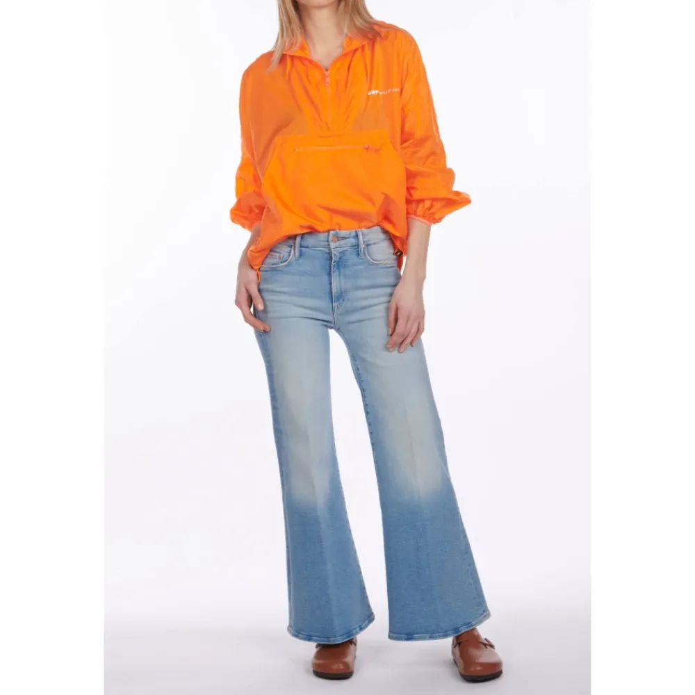 Blijf stijlvol en beschermd met de OOF Wear Wind Jacket voor dames. Deze levendige oranje jas heeft een ritssluiting aan de voorkant en een capuchon met trekkoord voor extra gemak. De elastiek op de plek zorgt voor een comfortabele pasvorm. Het model is 1,77 m lang en draagt maat 40. Gemaakt van 100% gerecycled polyester, is deze jas zowel modieus als milieubewust. Shopu en upgrade je outdoor garderobe met OOF Wear.
