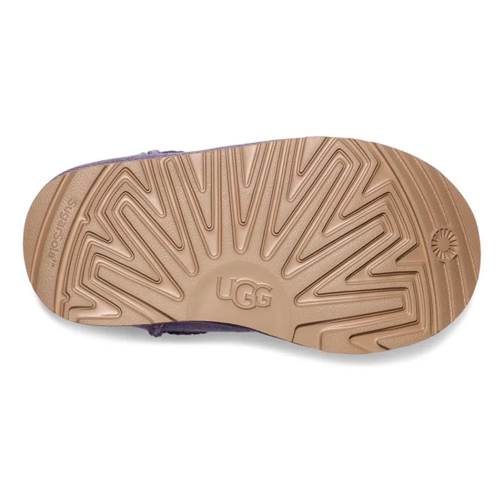 De UGG Classic II Boot combineert het kenmerkende sheepskin comfort van het merk met een lichtgewicht, flexibele buitenzool, gemaakt voor dagelijks gebruik en spel. Ideaal voor casual gebruik, de boot biedt gemakkelijk aan- en uit comfort en weerbestendige bescherming voor actieve dagen. Belangrijkste kenmerken: Paars | Lilac mauve | Sheepskin | Topische waterafstotende behandeling | Lichtgewicht dempende buitenzool | Flexibele rocker-bottom vorm | UGGpure™ wollen voering | Foam voetbed | Slip-on constructie | Voorbehandelde Twinface bovenkant | Enkelhoge schacht | Textiel binding | Geweven hiel label met UGG logo | Afmetingen pasvorm: Schachthoogte: 10.2 cm | Valt in het begin iets strak; sheepskin kan uitrekken tijdens het dragen om zich aan te passen aan de voet. | Ontworpen voor actief spelen met een flexibele rocker-bottom zool voor natuurlijke beweging. | Samenstelling onderhoud: Twinface sheepskin bovenkant | UGGpure™ wollen voering | Foam voetbed | Sugarcane EVA of Treadlite by UGG™ buitenzool | Polyester binding | Breng voor het eerste gebruik een beschermende spray aan. Reinig vlekken met een suède/sheepskin reiniger. Laat aan de lucht drogen, verwijderd van directe hitte. Niet in de machine wassen of in de droger.