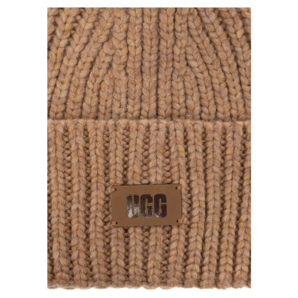 Blijf warm en stijlvol met deze beige UGG muts met logo patch. Gemaakt van een stofmix met een geribbeld breisel, is deze muts perfect om een vleugje merkherkenning toe te voegen aan je wintergarderobe.