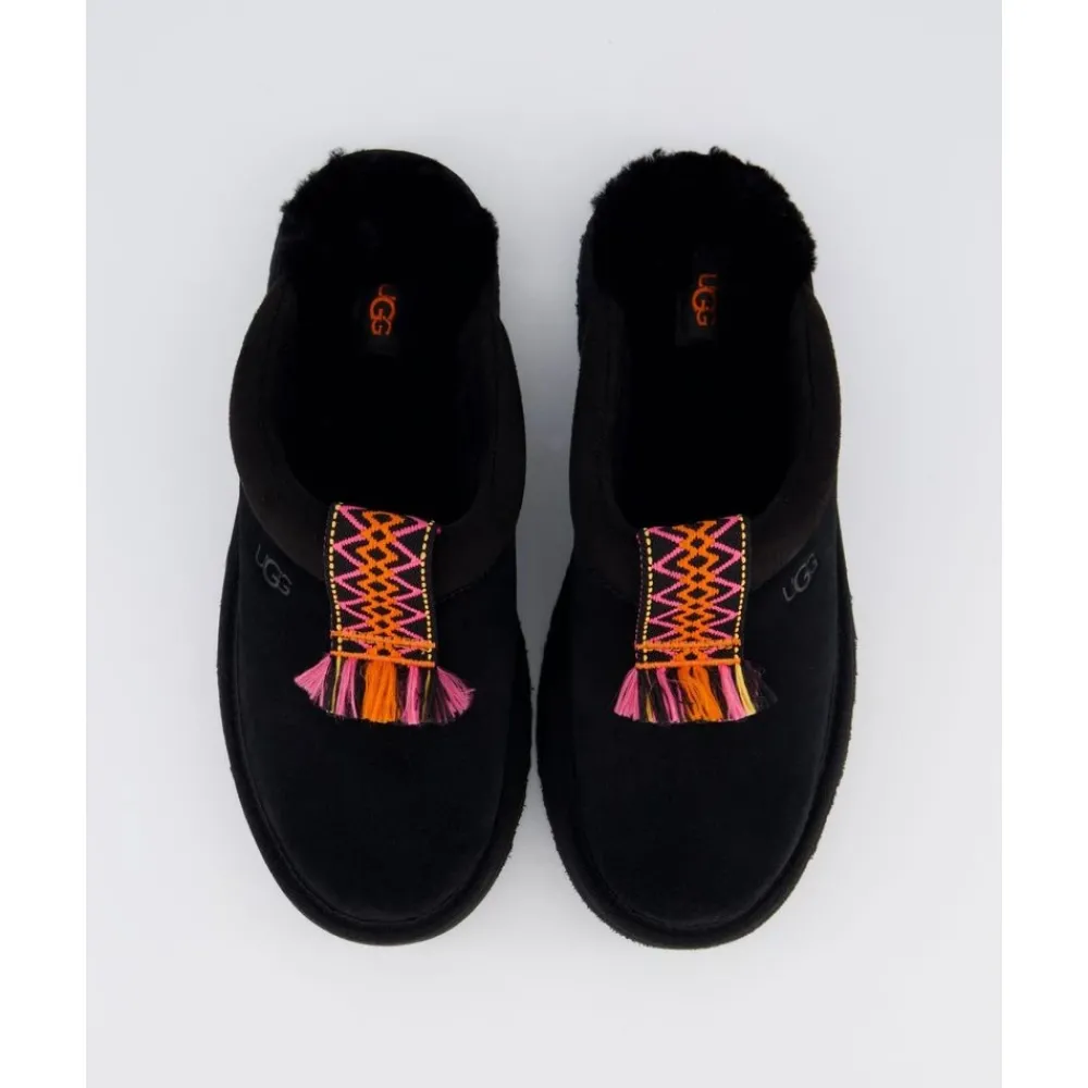 De UGG Tazzle Slipper combineert een suède bovenwerk met een zachte UGG-voering en een EVA-platform voor comfort bij dagelijks gebruik. Modelnaam bevestigd als “Tazzle”; leveranciers SKU aangeduid als 1153053K-BLK en ontwerper als UGG. citeturn0search1turn0search3 Belangrijkste kenmerken: Black | Zwart | Suède | Gedempte EVA-middenzool | Lichtgewicht EVA-loopzool | Platformzool voor extra hoogte | Instapmodel | 10 mm UGGplush-binnenzool | Gedempte EVA-middenzool | Suède bovenwerk | Binding van textielvlecht | UGG-logo met warmte-reliëf | Geweven binnenzoollabel | Afmetingen & pasvorm: Platformhoogte: 2,54 cm. | Valt normaal qua maat – bestel je gebruikelijke maat. | Samenstelling & verzorging: Bovenkant: Suède | Binnenzool: Schapenvacht (10 mm) | Vampvoering: UGGplush (60% wol, 40% Tencel Lyocell) | Loopzool/Middenzool: EVA | Maak suède plaatselijk schoon met een suèdeborstel of een geschikt suèdereinigingsmiddel; niet in de wasmachine. Aan de lucht laten drogen en de onderhoudsinstructies van de fabrikant volgen. citeturn0search1
