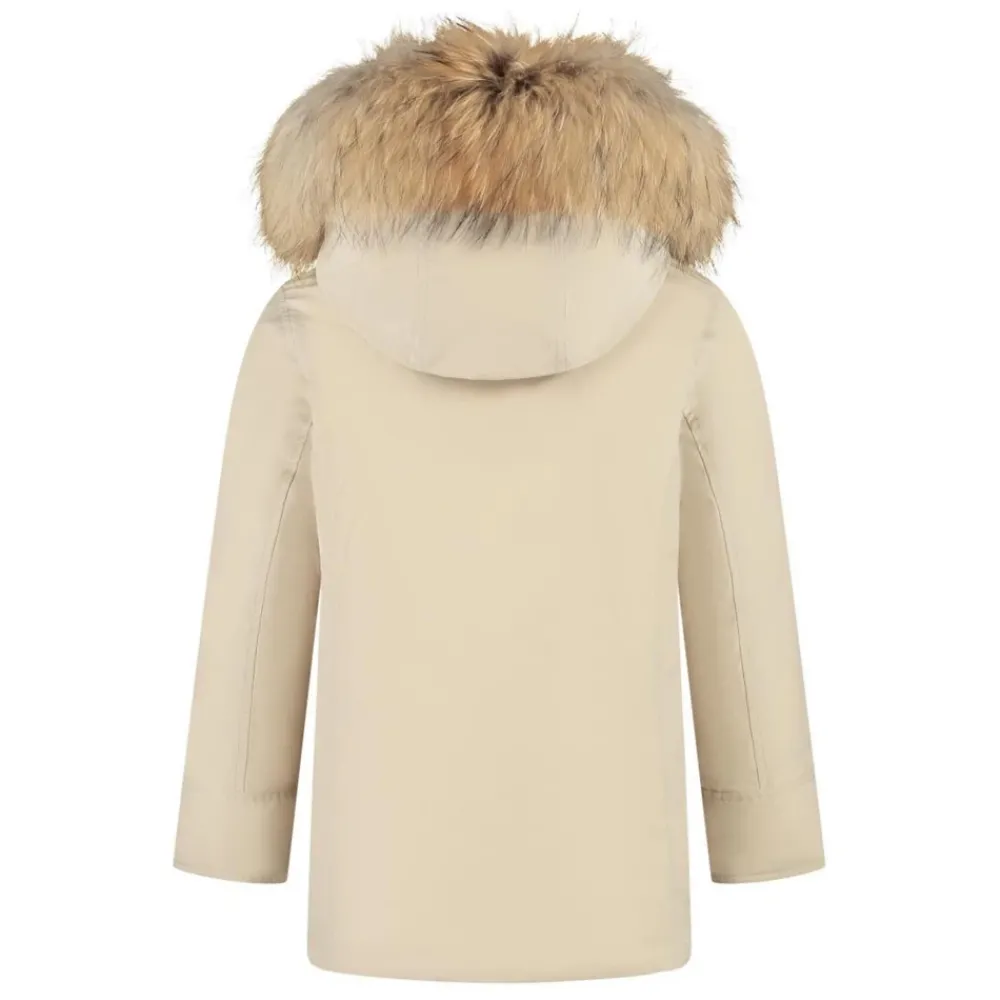 Blijf warm en stijlvol deze winter met de 8743 MILKY CREAM LUXURY ARCTIC RACCOON PARKA van Woolrich. Perfect voor meisjes die gezellig en modieus willen blijven.