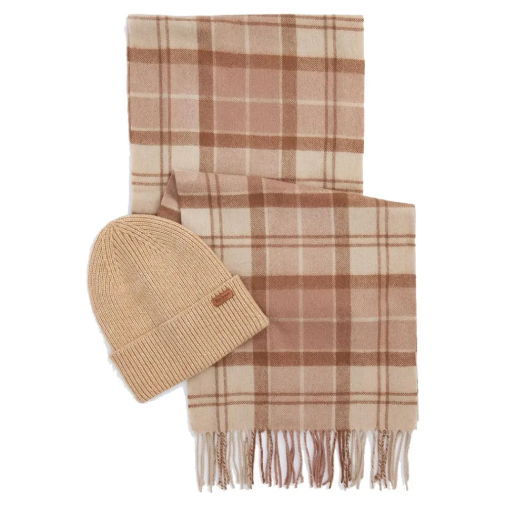 De Barbour Aubrey Beanie & Scarf Gift Set combineert een geribbelde beanie met een lamswollen sjaal voor betrouwbare warmte en een klassieke stijl. Ontworpen voor dagelijks gebruik buitenshuis, is het een attent cadeau. Belangrijkste kenmerken: Bruin | Marrone | Lamswol en polyester mix | Warm en isolerend | Zacht aanvoelend | voor regelmatig gebruik | Tweedelige set: beanie en sjaal | Gepresenteerd in een merkgeschenkverpakking | Beanie met omgeslagen rand voor verstelbare bedekking | Geribbelde beanie met omgeslagen rand | Sjaal met tartan ruit en kwastjes aan de zoom | Badge met merklogo en geweven label | Afmetingen & pasvorm: Sjaal: Breedte 32 cm, Lengte 180 cm | One size | Samenstelling & onderhoud: Beanie: 70% Polyester, 26% Polyamide, 4% Wol | Sjaal: 100% Lamswol | Uitsluitend chemisch reinigen. Volg de wasvoorschriften op het kledinglabel.
