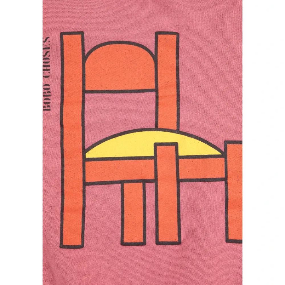 BOBO CHOSES PRINTED SWEATSHIRT straalt subtiele elegantie en kinderlijke vreugde uit. De speelse roze tint mengt klassieke stijl met expressieve moderniteit, terwijl de losse oversized snit comfort naadloos combineert met meisjesachtige bewegingsvrijheid. Lange mouwen afgewerkt met zorgvuldig vervaardigde ribbels en brede details bij de halslijn en zoom zorgen voor netheid en draagcomfort. Het gebruik van hoogwaardige KATOEN GEBREID STOF met een uitzonderlijk zachte textuur garandeert zachtheid voor de huid en duurzaamheid, zelfs tijdens intensief spelen. De uniciteit wordt versterkt door een abstracte stoelprint in oranje en gele tinten, geaccentueerd door een zwarte omtrek, met de prestigieuze BOBO CHOSES inscriptie die er verticaal naast loopt. WAAROM DIT PRODUCT KOPEN? * Uniek, artistiek ontwerp met een speelse grafische afbeelding * Maximaal comfort dankzij zacht, natuurlijk materiaal * Gerenommeerd ontwerp en tijdloze kwaliteit van vakmanschap * De perfecte keuze voor jonge individualisten