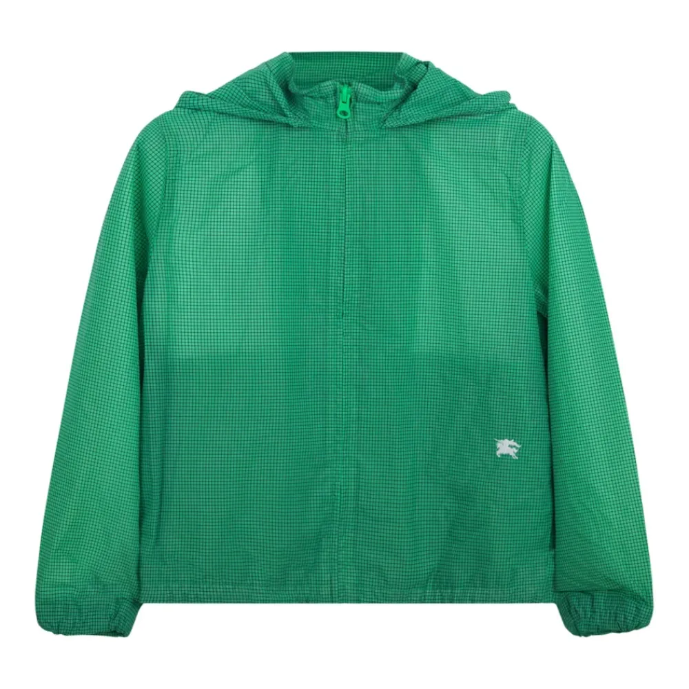 Burberry groene nylon jas met een klassieke capuchon en ritssluiting aan de voorkant. Een praktische buitenlaag ontworpen voor dagelijks gebruik met elastische manchetten en een rechte zoom. Belangrijkste kenmerken: Groen | Helder jade | Nylon | Ritssluiting aan de voorkant | Elastische manchetten | Klassieke capuchon | Lange mouwen | Rechte zoom | Samenstelling & verzorging: Nylon