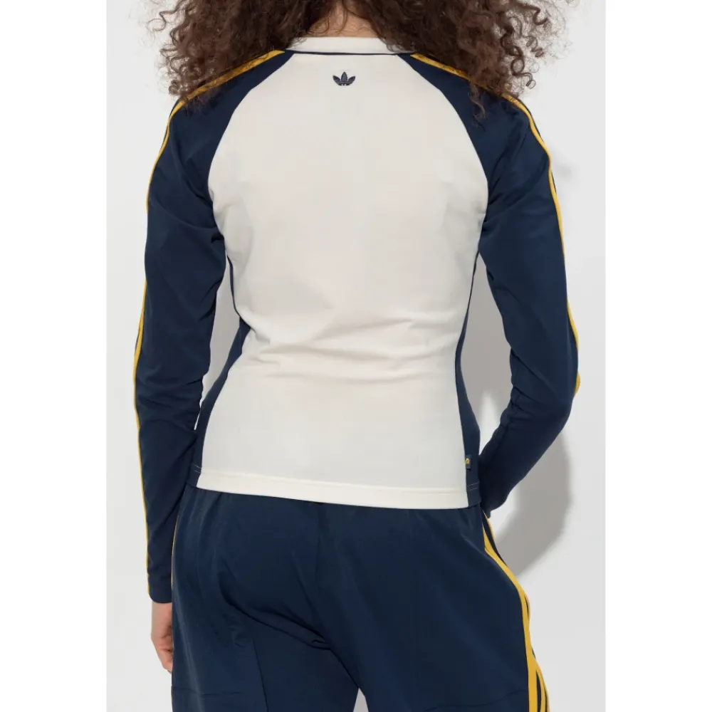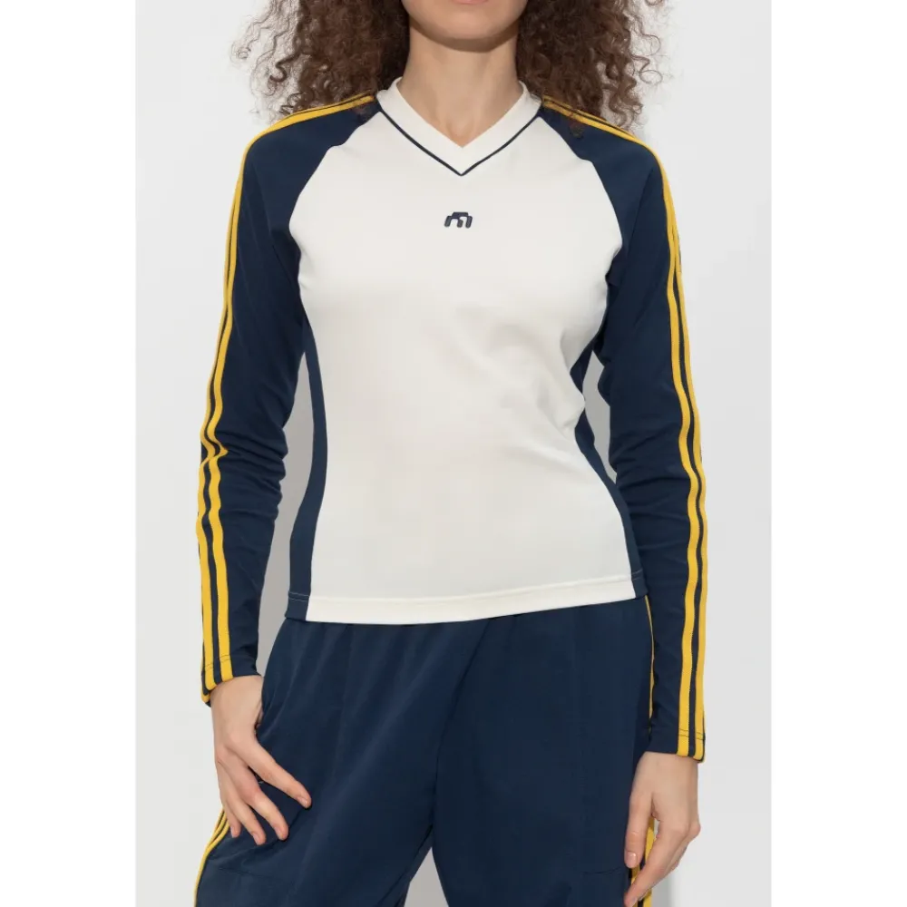 De Adidas Originals Long Sleeve Base Layer is een sportief, nauwsluitend top van de adidas x Miaou-samenwerking, ontworpen voor een gestroomlijnd silhouet en opvallende mouwdetails. Belangrijkste kenmerken: Wit | Marineblauw | Geel | Katoen | Ademend | Comfortabel | | Lichtgewicht | V-vormige halslijn met marineblauwe bies | Raglanmouwen met drie contrasterende strepen | Contrasterende zijpanelen | Geborduurd designerlogo op de borst | Afmetingen & pasvorm: Lengte model: 176 cm | Borst: 85 cm | Taille: 60 cm | Heupen: 89 cm | Model draagt maat: S | Nauwsluitende, sportieve snit | Samenstelling & onderhoud: 50% katoen | 40% polyester | 10% elastaan