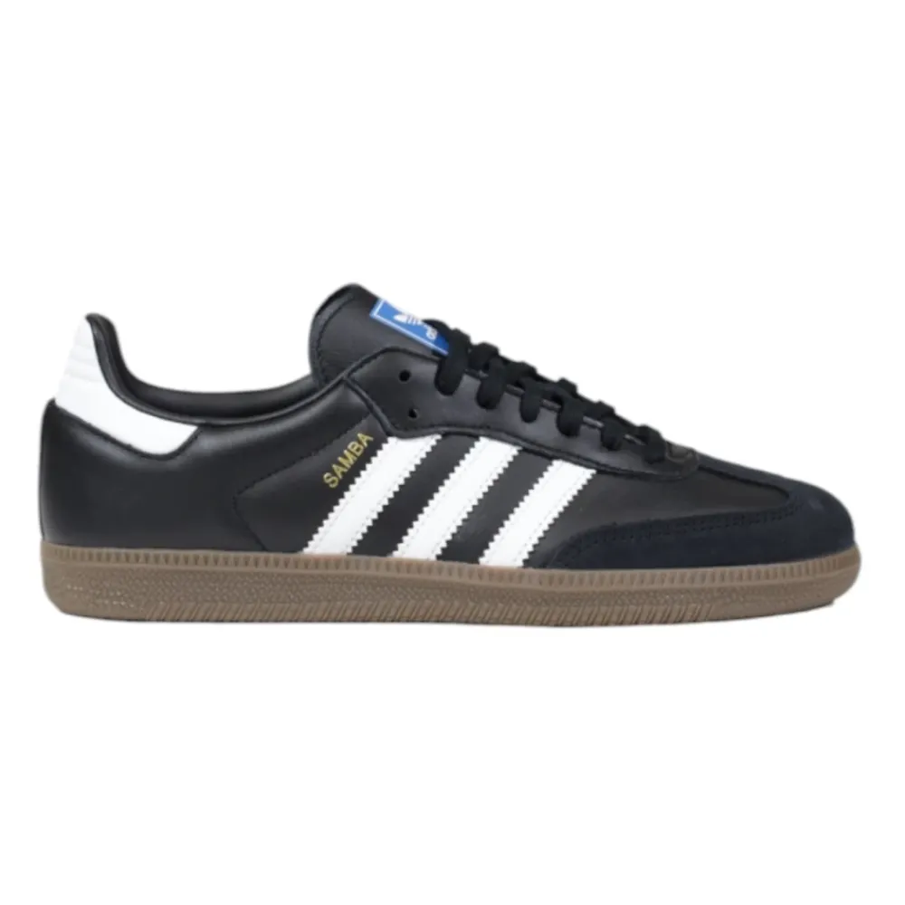 De Adidas Originals Samba OG J sneakers vernieuwen het klassieke Samba silhouet met een leren bovenwerk en een rubberen zool, gemaakt voor dagelijks gebruik in de stad en casual styling. Belangrijkste kenmerken: Core black | Cloud white | Gum | Leer | Gum rubberen buitenzool voor betrouwbare grip | Verstevigde hielkap voor stabiliteit | Vetersluiting | OrthoLite-inlegzool (comfortabele demping, uitneembaar) | T-vormige suède neus | Leren overlays met drie strepen | Goudfolie ‘Samba’ branding | Low-profile, klassiek Samba silhouet | Afmetingen & pasvorm: Regular fit | Samenstelling & onderhoud: 100% leer