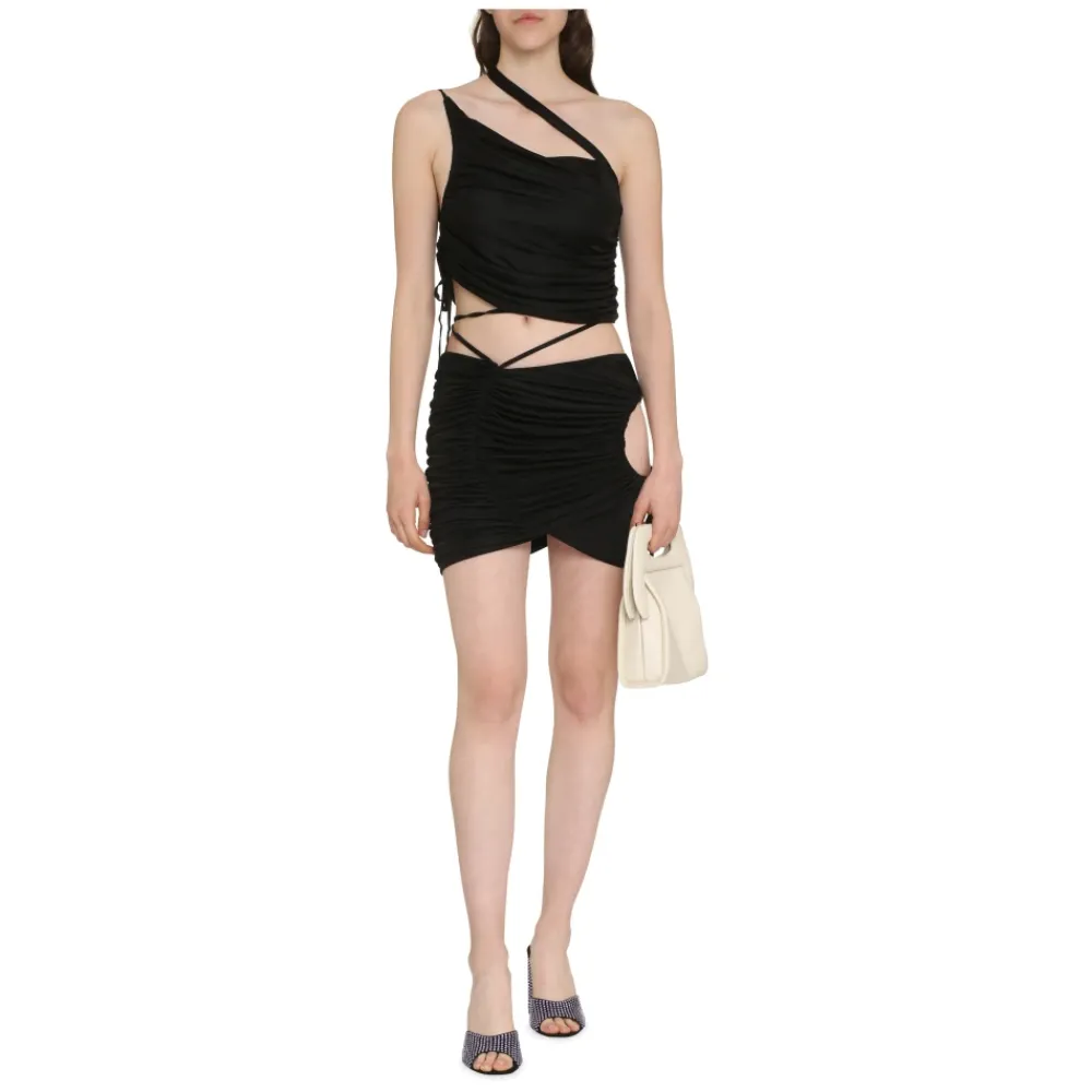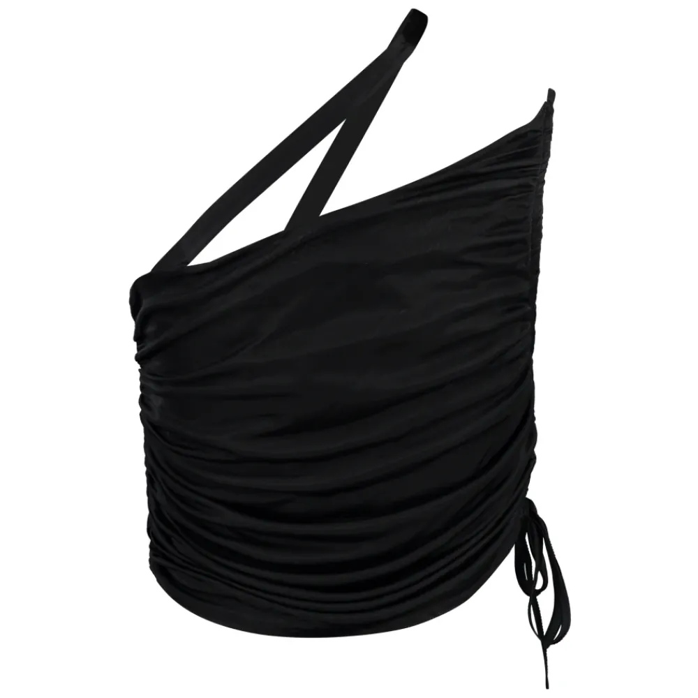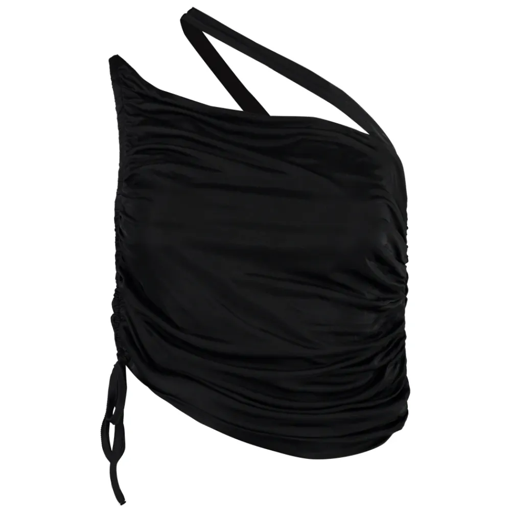 Andrea Adamo Gedrapeerde Top — een viscose top met draperie, een asymmetrisch silhouet met één schouder en verstelbare bandjes. Ontworpen voor elegante avondlooks en gemakkelijke laagjes. Belangrijkste kenmerken: Zwart | Viscose | Verstelbare bandjes | Gedrapeerd ontwerp | Silhouet met één schouder | Vetersluiting aan de zijkant | Gebogen zoom | Cropped lengte | Afmetingen & pasvorm: Valt normaal qua maat | Samenstelling & verzorging: 100% Viscose | Machinewas op 30°C.