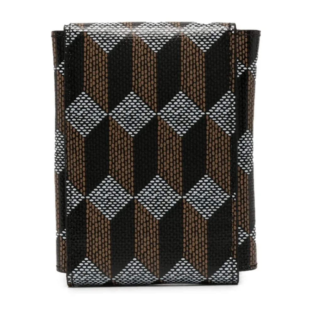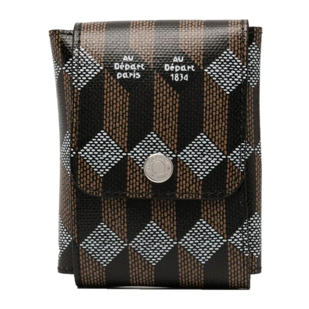 Reis in stijl met deze zwarte/bruine/zilverkleurige leren toilettas met abstract patroon en logo print van Au Départ. De tas heeft een abstract patroonprint, logo print aan de voorkant en drukknoopsluiting, waardoor hij perfect is voor al je toiletartikelen. Gemaakt van 100% leer, straalt hij luxe en verfijning uit. Koop nu en upgrade je reisbenodigdheden met Au Départ.