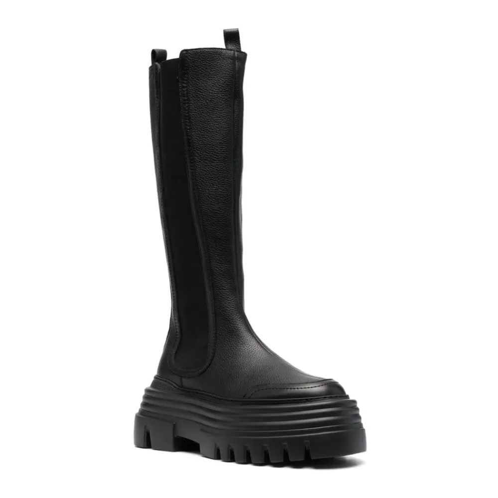 Ontdek de tijdloze elegantie van Bally`s Zwarte Kalfsleren Lange Laarzen met Structuur, vervaardigd uit 100% leer voor een veelzijdige toevoeging aan uw garderobe. Belangrijkste kenmerken: Zwart | Leer | Chelsea boot stijl | Afmetingen en pasvorm: Normale pasvorm | Samenstelling en onderhoud: 100% leer | Reinig met een vochtige doek.