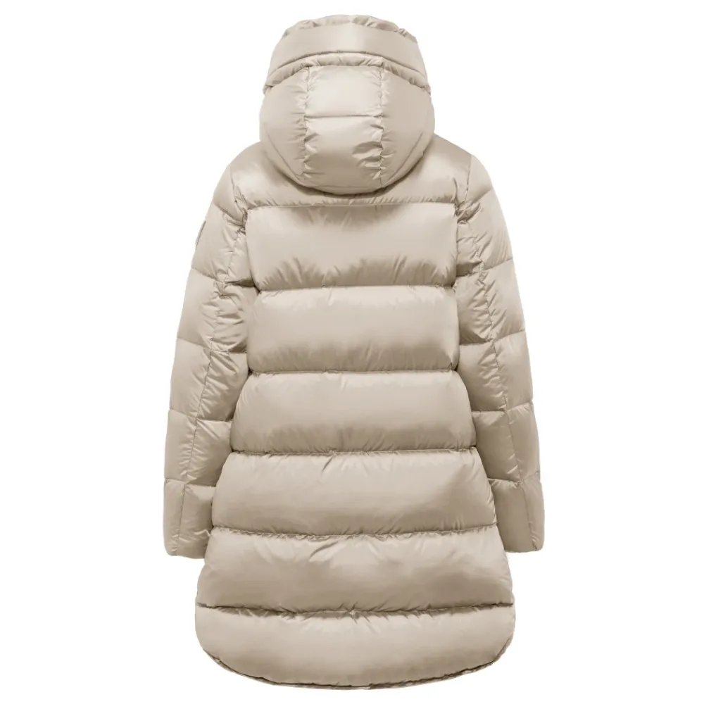Blijf warm en stijlvol met deze lange A-lijn donsjas met een grote capuchon en praktische details. Belangrijkste kenmerken: Crystal Grey | Beige | 100% helder nylon | waterafstotend | winddicht | grote capuchon met trekkoord | rits met dubbele schuif | meerdere zakken | A-lijn silhouet | Afmetingen en pasvorm: regular fit | Samenstelling en onderhoud: 90% dons | 10% veren | Koud wassen in de machine, drogen in de droger op lage temperatuur
