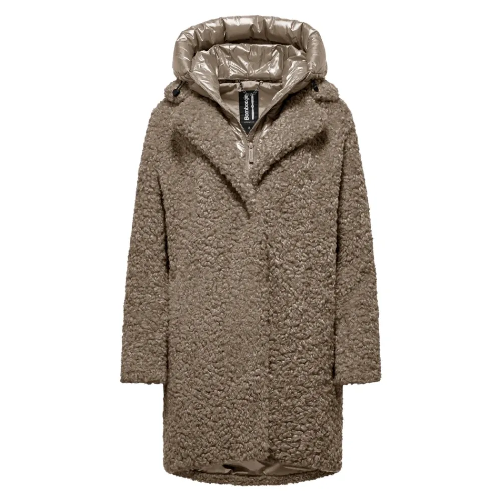 De Bomboogie Odessa Overcoat combineert een lang, strak silhouet met zachte faux-shearling voor omhullende warmte. Praktische details – een nylon gevoerde brede capuchon, verborgen drukknoopsluiting en zijzakken – maken het een verfijnde keuze voor dagelijks wintergebruik. Belangrijkste kenmerken: Beige | Faux-shearling | Omhullende warmte | Windbescherming | Nylon gevoerde capuchon | Verborgen drukknoopsluiting aan de voorkant | Zijzakken | Strak silhouet | Lange lengte | Brede capuchon | Minimaal profiel | Afmetingen & pasvorm: Regular fit voor dagelijks comfort en bewegingsvrijheid