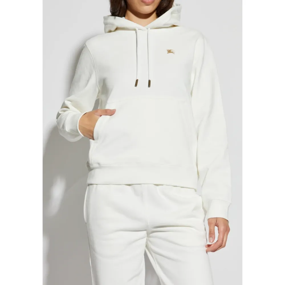 BURBERRY LOGO SWEATSHIRT is een manifestatie van verfijnde eenvoud en toont de uitmuntendheid van het bekende Britse modehuis. Dit ontwerp met een regular fit, gemaakt van exclusief, fluweelzacht katoen, biedt ongeëvenaard draagcomfort en een verfijnde uitstraling. De elegante verstelbare capuchon en VOORZAK “KANGAROO” creëren een harmonieuze mix van functionaliteit en stijl. Het subtiele GOLDEN KNIGHT WITH SPEAR LOGO, geborduurd op de linkerborst, trekt de aandacht van veeleisende modeliefhebbers, terwijl de achterkant is versierd met een opvallend geborduurd logo met het kenmerkende ruitmotief. Metalen afwerkingen aan de trekkoorden dienen als een verfijnd detail dat het authentieke karakter van het product benadrukt. WAAROM IS HET DE MOEITE WAARD OM DIT PRODUCT TE KOPEN? * Uitzonderlijke kwaliteit van het gerenommeerde modehuis Burberry * Hoogwaardig katoen voor comfort en duurzaamheid * Unieke details: borduurwerk, kenmerkend logo, metalen accenten * Klassieke pasvorm met een moderne twist * Een uitstekende keuze voor degenen die elegantie en tijdloze stijl waarderen Model’s Afmetingen Hoogte: 176 cm Buste: 85 cm Taille: 60 cm Heupen: 89 cm Model draagt maat: S