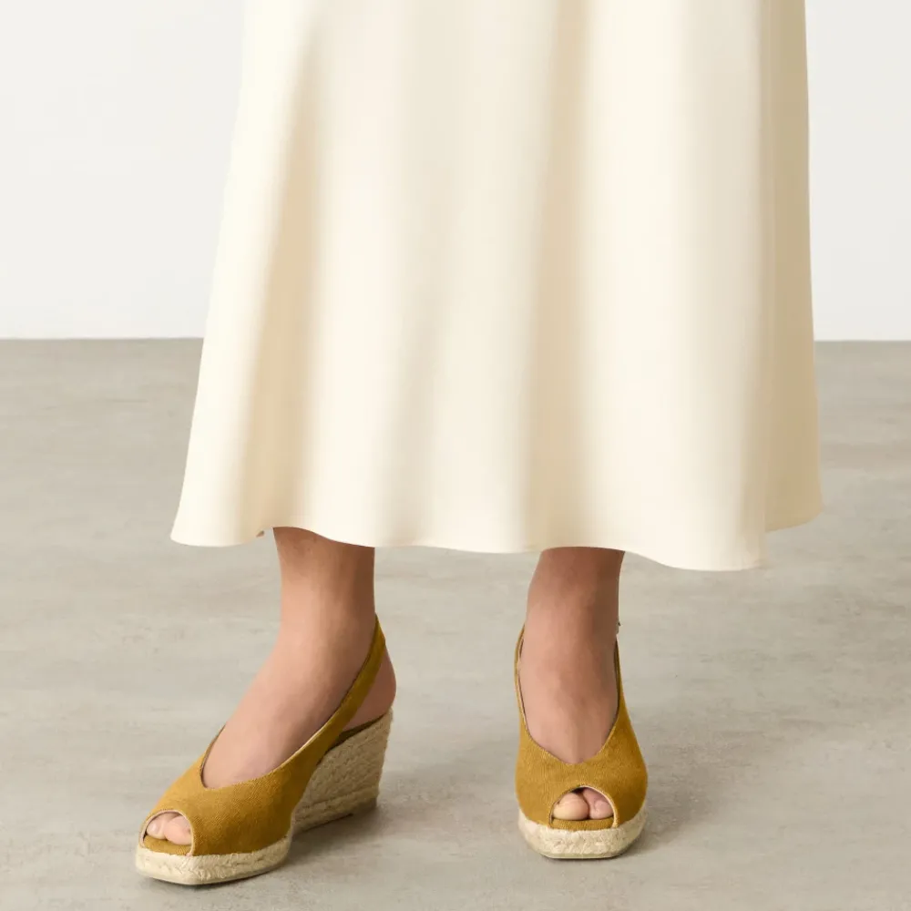 Maatgetrouw. Dosalia peeptoe-espadrilles van gewassen katoen met verstelbare gesp en zacht voetbed. Jute sleehak van 7 cm. Hoogte: 7 Hakhoogte: 5 Platform: 2