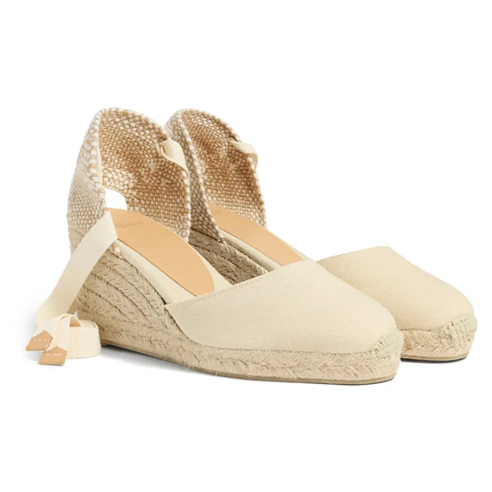 Verhoog je stijl met deze Ivory Castañer Carina sleehakken. Met de hand vervaardigd in Spanje, hebben deze sleehakken een ronde neus, gevlochten hielkap en lintvetersluiting om de enkel. Gemaakt van gecertificeerd katoen met een koeienhuid interieur en een gevulkaniseerde rubberen zool. Totale hoogte: 7 cm; Plateauhoogte: 2 cm; Sleehakhoogte: 5 cm.