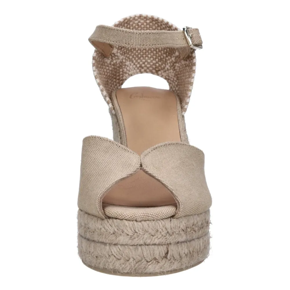 Verhoog je stijl met deze Castañer sleehakken. Voorzien van stoffen sandalen met leren voering en een rubberen zool. 3 cm plateau voor extra hoogte.