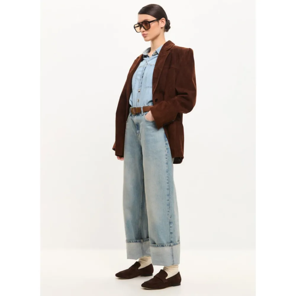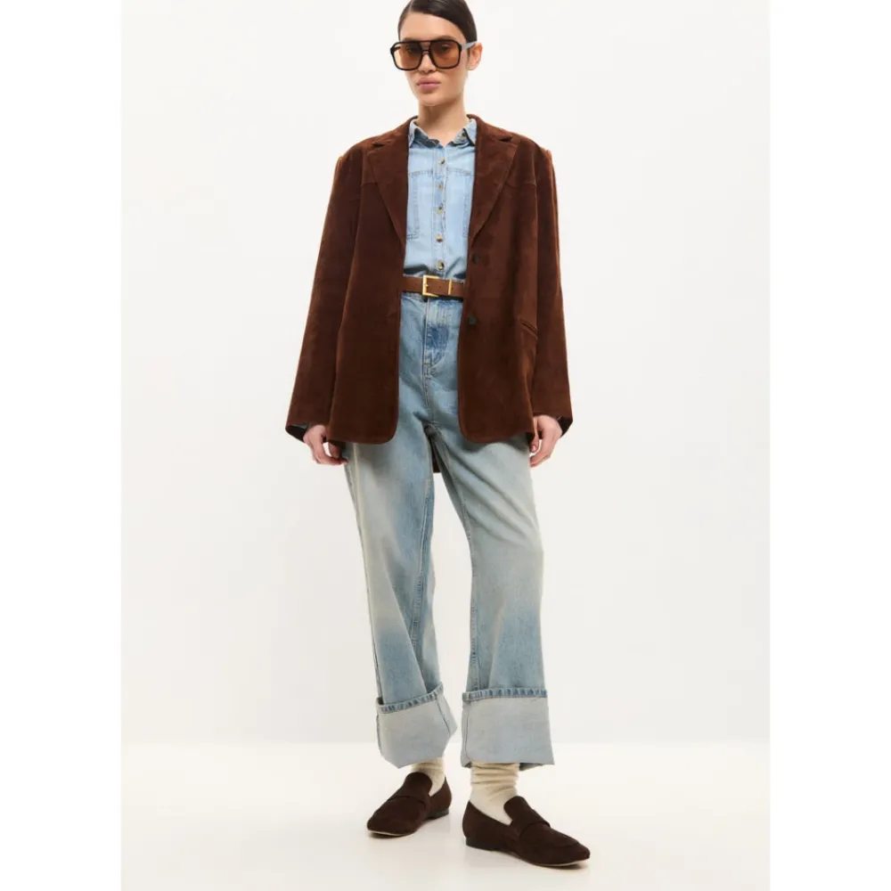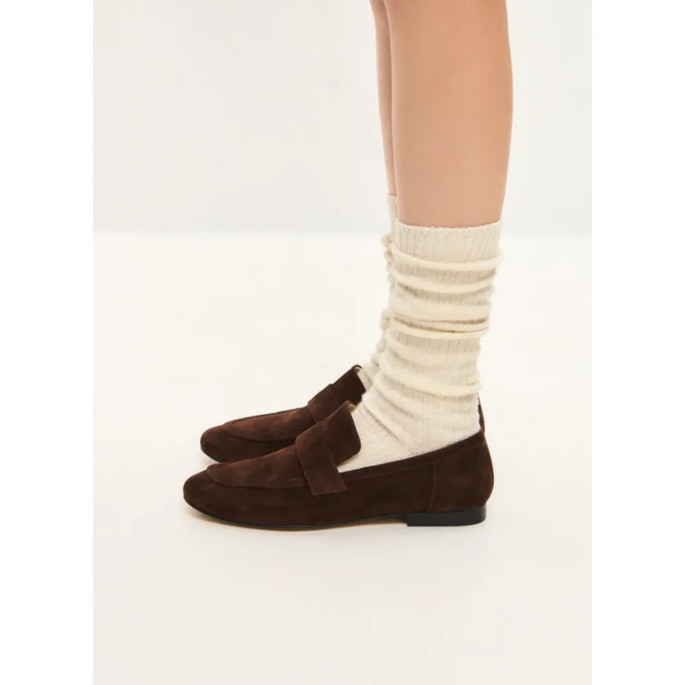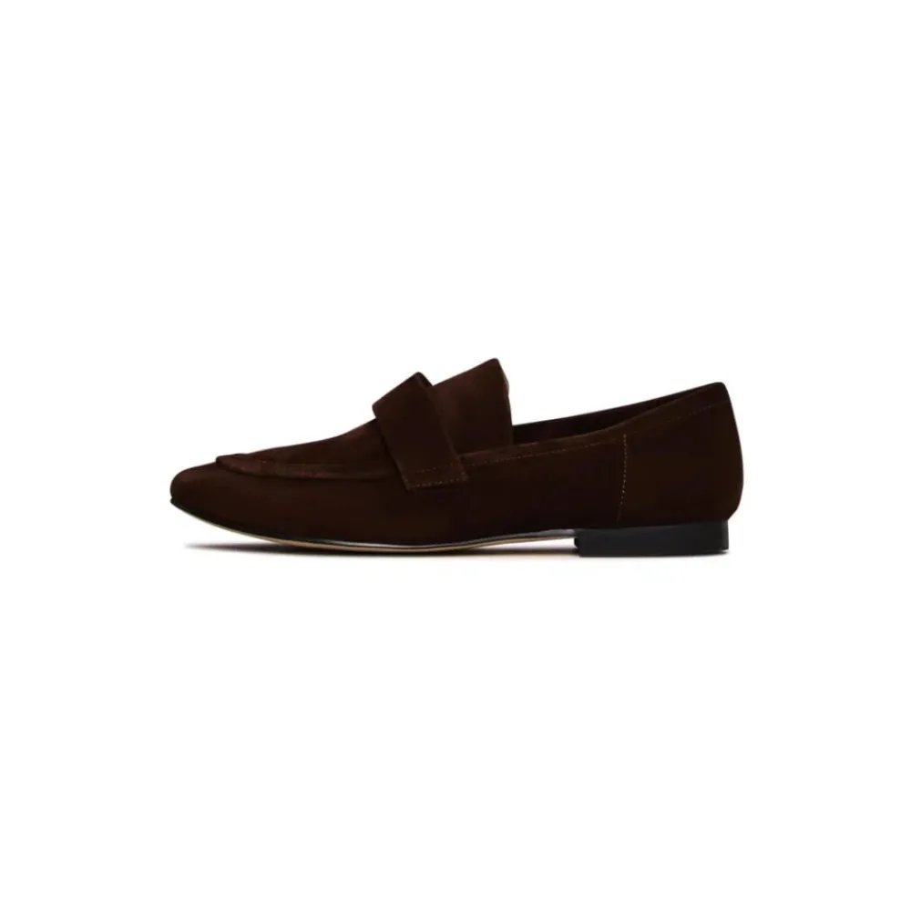 Deze klassieke suède penny loafers bieden een verfijnde mix van elegantie en comfort. Gemaakt van premium suède, ze hebben een slanke silhouet met een tijdloos penny band detail. Hun veelzijdige ontwerp maakt ze de perfecte keuze voor zowel casual als gepolijste outfits, waardoor moeiteloze stijl voor elke gelegenheid wordt gegarandeerd. Materiaal: Premium suède Voering: Gladleren voering Vullingstype: Licht gewatteerd voetbed Schoenpunt: Amandel teen Sluiting: Instapmodel Zool: rubberen zool Haktype: Plat Details: Klassieke penny band, fijne stiksels en een verfijnde esthetiek