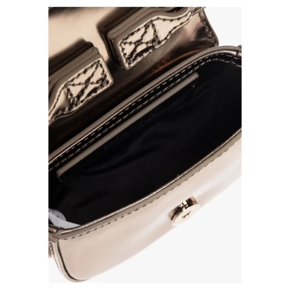 De Diesel Schoudertas is een chique accessoire, vervaardigd uit gepolijst leer, met een donkergoudkleurige afwerking. Het opvallende ontwerp omvat een magnetische flapsluiting en een afneembare schouderriem voor veelzijdige styling. Belangrijkste kenmerken: Goud | Geel | Gepolijst leer | Afneembare schouderriem | Magnetische flapsluiting | Metalen logo detail | Halfronde handgreep |