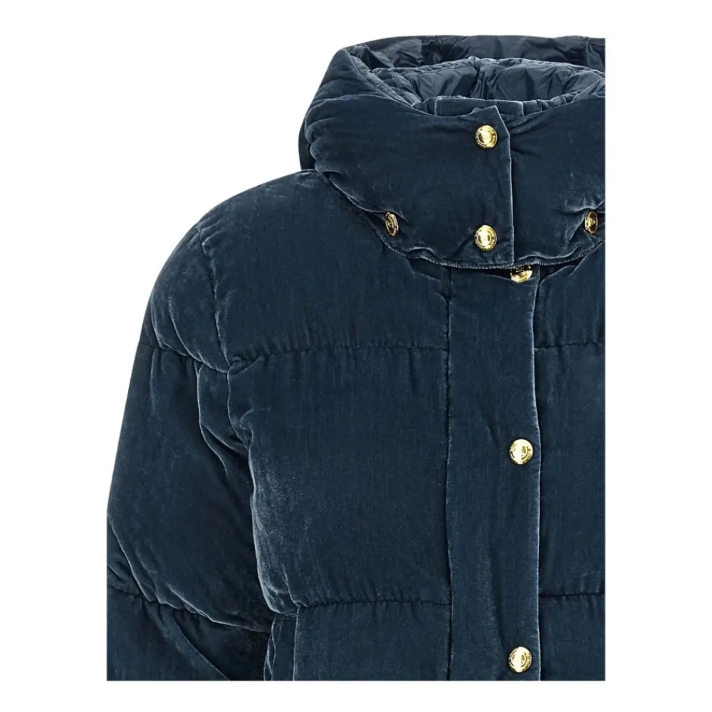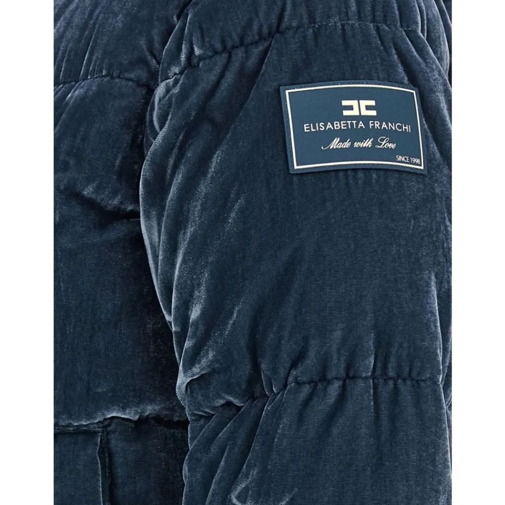 Blijf warm en stijlvol deze winter met deze blauwe fluweeleffect gewatteerde jas van Elisabetta Franchi. Voorzien van een verstelbare en afneembare capuchon, drukknoopsluiting aan de voorkant en logopatch.