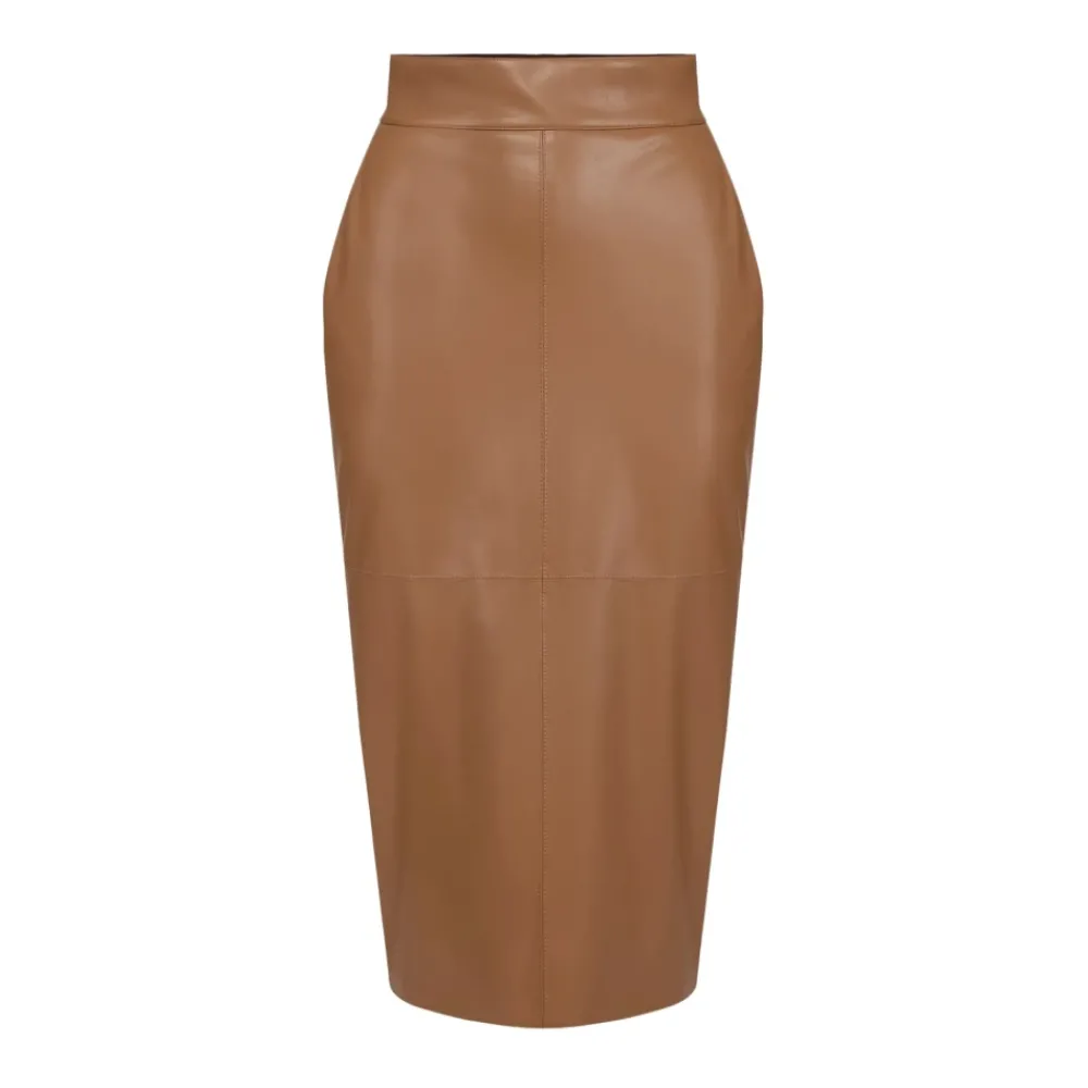 Zachte en stijlvolle kokerrok van Elisabetta Franchi, met zakken en metalen haakdetails aan de achterkant. Gemaakt van extra zacht eco-leer. De modellen van Elisabetta Franchi zijn over het algemeen nauwsluitend ontworpen. Als je tussen twee maten in zit, raden wij je aan een maat groter te nemen.