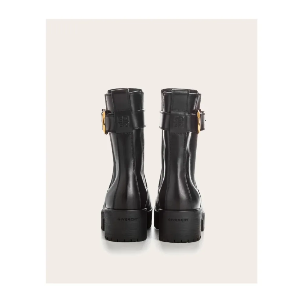 Geef je schoenencollectie een boost met deze Givenchy chunky leren enkellaarsjes, ontworpen om stijl en duurzaamheid te combineren met hun opvallende metallic gespen en robuuste zool. Belangrijkste kenmerken: Zwart | 100% kalfsleer | Metallic gouden en zilverkleurige gespen | Chunky zool van 5 cm | Samenstelling en onderhoud: 100% kalfsleer | Reinig met een zachte doek.
