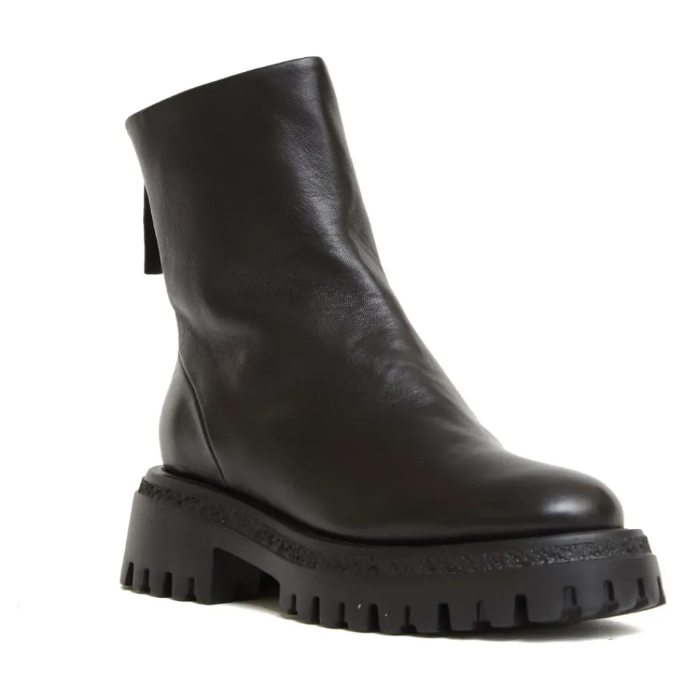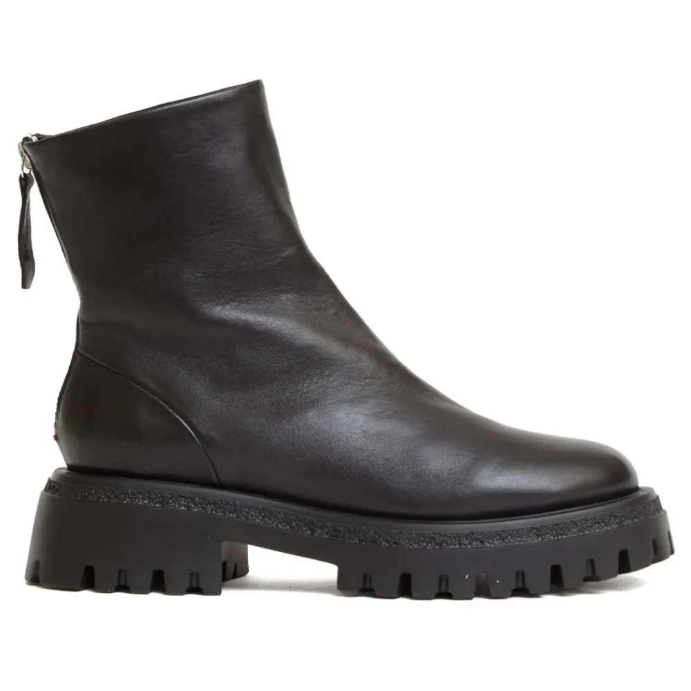 De Halmanera Rama 26 enkellaarsjes combineren een grove rubberen zool met een rits aan de achterkant voor gemakkelijk aan- en uittrekken. Deze leren enkellaarsjes bieden een balans tussen comfort en een gestructureerd silhouet voor dagelijks gebruik. Belangrijkste kenmerken: Zwart | Nero | Kalfsleer | Rubberen profielzool voor grip | Comfortgerichte constructie | Ritssluiting aan de achterkant | Inlegzool van leer met merklogo | Enkelhoogte | Ronde neus | Ritsdetail aan de achterkant | Grove profielzool | Afmetingen en pasvorm: Zoolhoogte: 4 cm | Valt normaal qua maat | Samenstelling en verzorging: Buitenkant: Kalfsleer 100% | Voering: Kalfsleer 100% | Zool: Rubber 100% | Afnemen met een vochtige doek. Behandel het leer met leerconditioner en houd het droog.