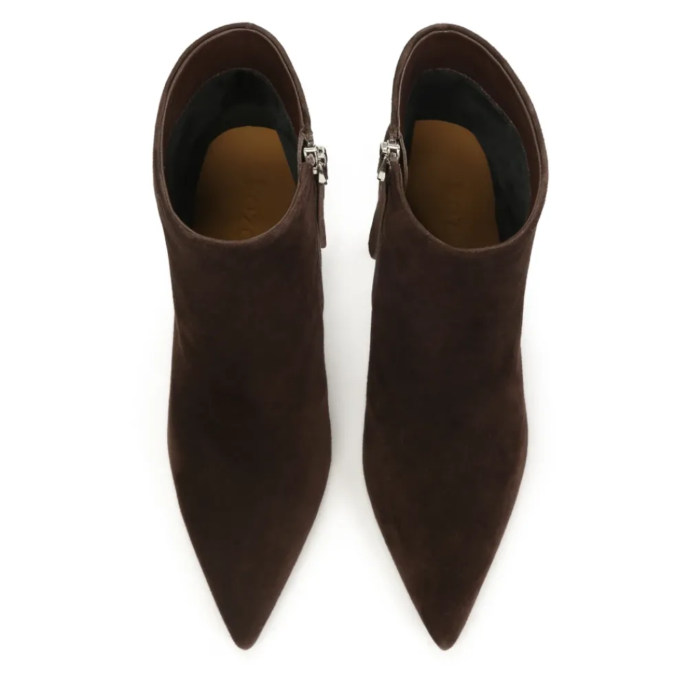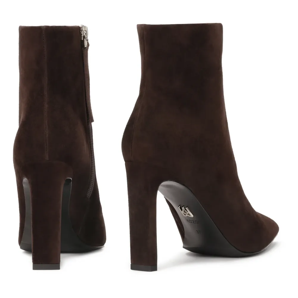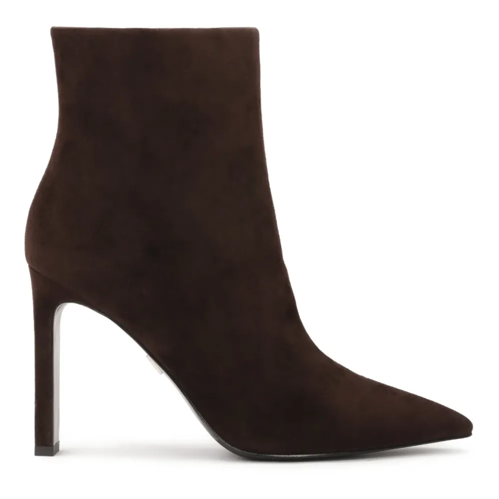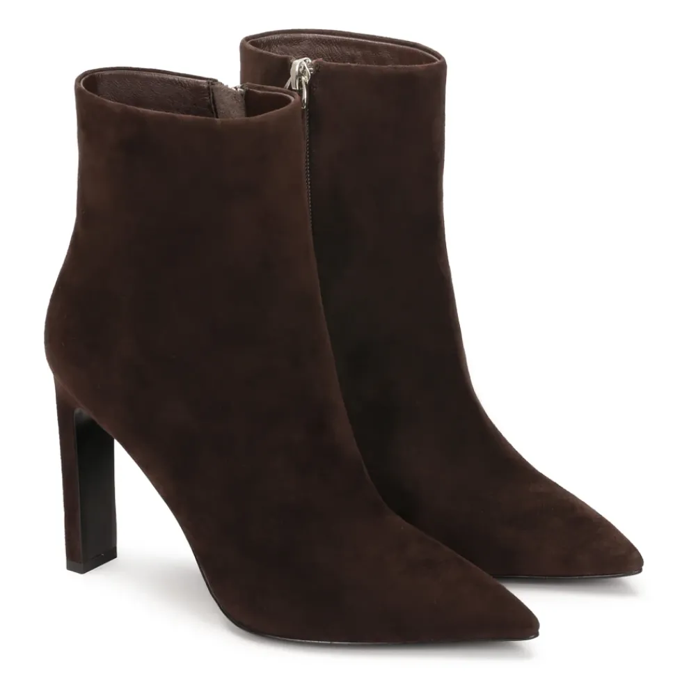 De elegante laarsjes met hak van Kazar geven een verfijnd, puntig silhouet aan zowel alledaagse als geklede looks. Deze laarsjes tot de enkel vallen op door hun slanke neus en elegante, dunne hak, ontworpen voor draagbare stijl en subtiele warmte. Belangrijkste kenmerken: Bruin | Suède | Subtiele interne verwarming | Ritssluiting voor gemakkelijk aan- en uittrekken | Comfortabele hak voor langdurig dragen | Warme stoffen voering (gedeeltelijke isolatie) | Puntige neus | Schachthoogte tot de enkel | Dunne stilettohak | Zijrits | Samenstelling & onderhoud: Suède (bovenkant) | Semianiline schapenleren voering | Stoffen voering