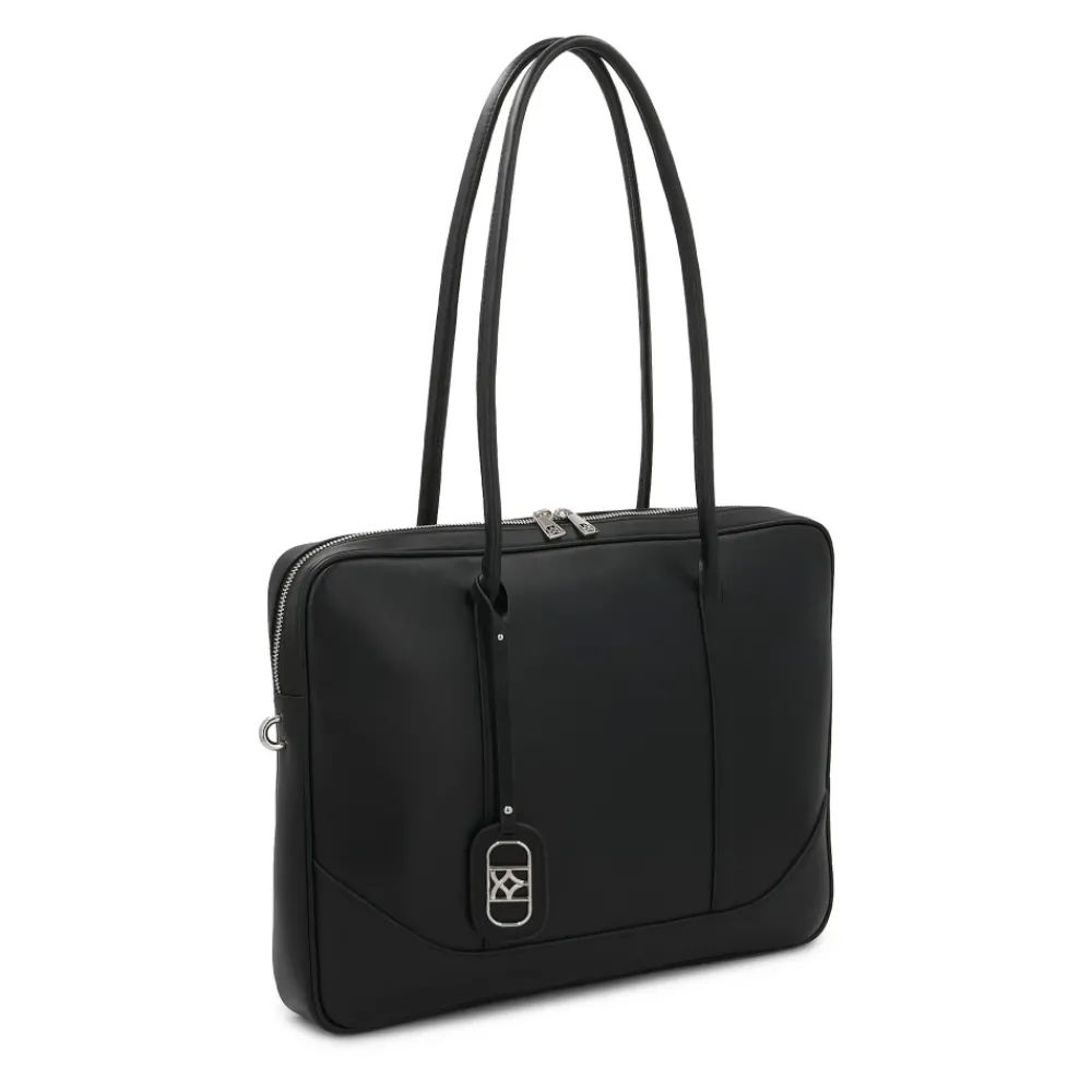 Exclusieve laptoptas, zorgvuldig genaaid van de hoogste kwaliteit zwart natuurlijk leer, waarbij klassieke elegantie en moderne functionaliteit worden gecombineerd. De klassieke rechthoekige vorm wordt benadrukt door subtiele stiksels en minimalistisch design. De tas sluit met een stevige rits voor gemakkelijke toegang tot het interieur, met een laptopvak beschermd door een zachte voering en extra vakken voor documenten, telefoon en kleine accessoires. Voorzien van twee slanke, stevige handvatten om in de hand te dragen en een afneembare, verstelbare schouderriem. Met zijn elegante ontwerp en uitstekend vakmanschap is de tas perfect voor zowel professionele als casual outfits. Productdetails: De tas heeft een hoofdcompartiment dat wordt gesloten met een rits. Het heeft 1 vak met ritssluiting en 1 vak met magnetische drukknoop. De tas heeft lange hand- en schouderhengsels en een afneembare, niet-verstelbare riem.