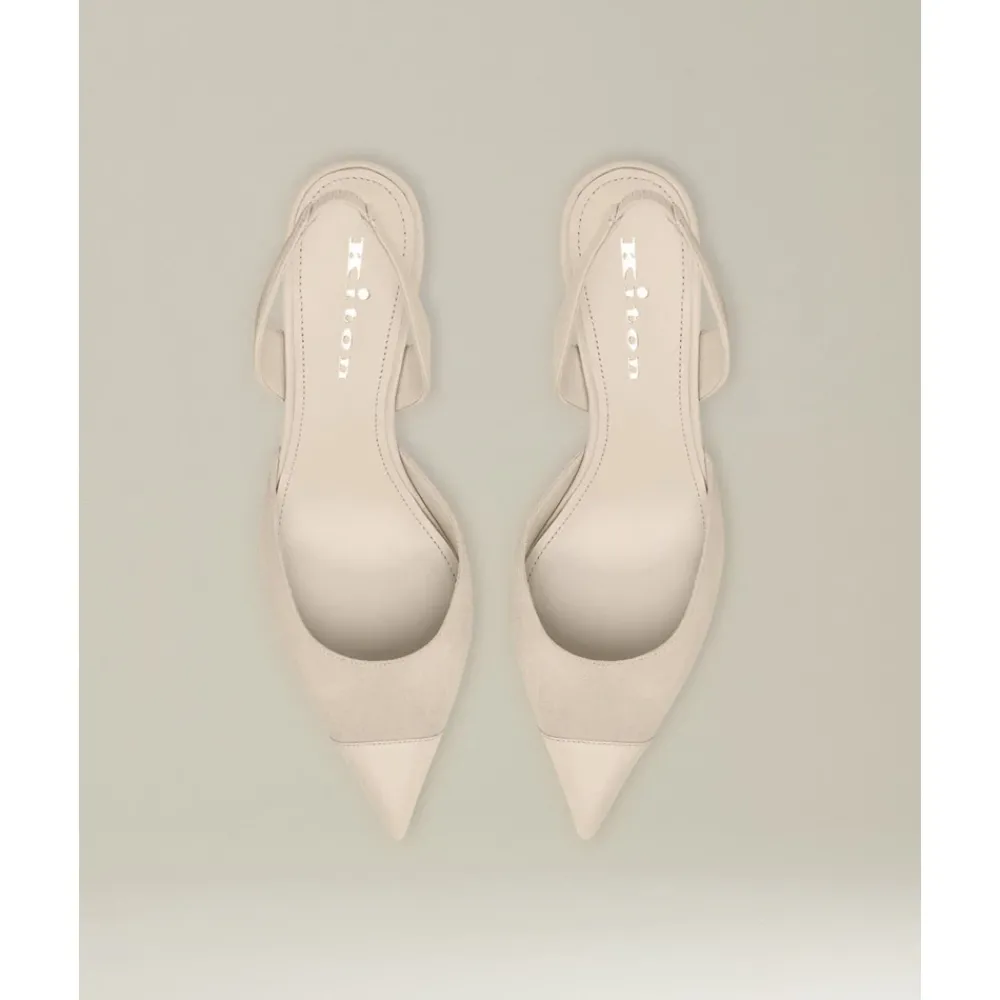 De Kiton Suède Slingback Pumps combineren verfijnd suède vakmanschap met lederen details en een hak van 7 cm voor een elegante, veelzijdige toevoeging aan de garderobe. Belangrijkste kenmerken: Beige | Suède | Slingback bandje voor een stevige pasvorm | Hak van 7 cm | Slank minimalistisch silhouet | Lederen afwerkingsdetails | Afmetingen & pasvorm: Hakhoogte: 7 cm | Samenstelling & verzorging: Bovenkant: 100% lamsleer | Zool: 100% leer | Binnenzool: 100% geitenleer | Voering (bont): 100% geitenleer | Vermijd langdurige blootstelling aan licht, hitte en vochtigheid; vermijd contact met water, oliën, make-up en parfums. Reinig en behandel met speciale leer-/suède producten.