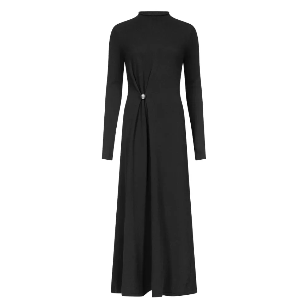 De Abito lungo in maglia van Loulou Studio is een gebreide maxi-jurk ontworpen voor verfijnde dagkleding, met een opvallend metalen detail aan de zijkant. De lange mouwen en maxi-lengte maken het een veelzijdig item voor gelaagde of op zichzelf staande looks. Belangrijkste kenmerken: Zwart | Gebreid | Maxi-lengte | Lange mouwen | Metalen detail aan de zijkant | Gebreide constructie