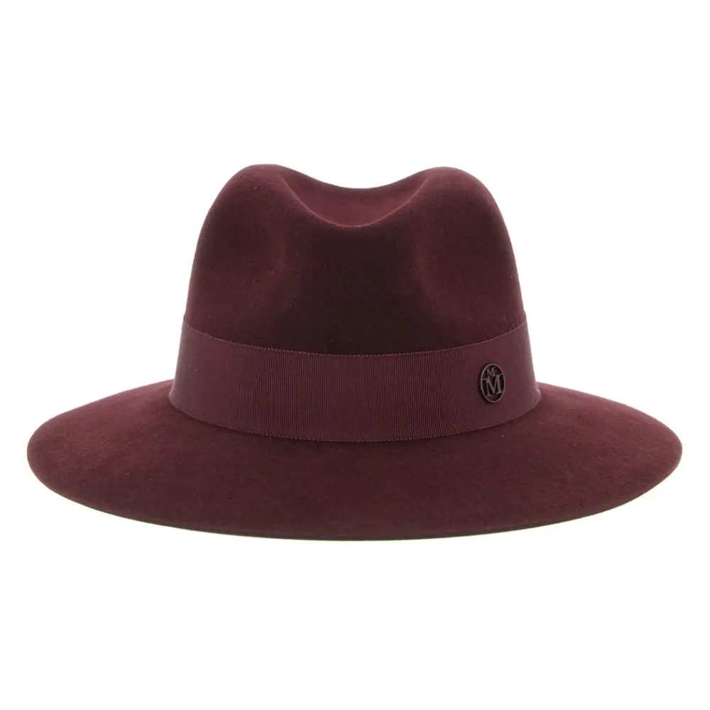 De Henrietta Hat van Maison Michel combineert een klassiek fedora silhouet met een ton-sur-ton grosgrain lint en een subtiel metalen logo, ideaal voor verfijnde alledaagse styling. Belangrijkste kenmerken: Bruin | Bordeaux | Konijnenvilt | Fedora silhouet | Ton-sur-ton grosgrain lint | Fedora metalen logo op de voorkant | Afmetingen & pasvorm: Valt normaal qua maat | Samenstelling & verzorging: 100% konijnenvilt