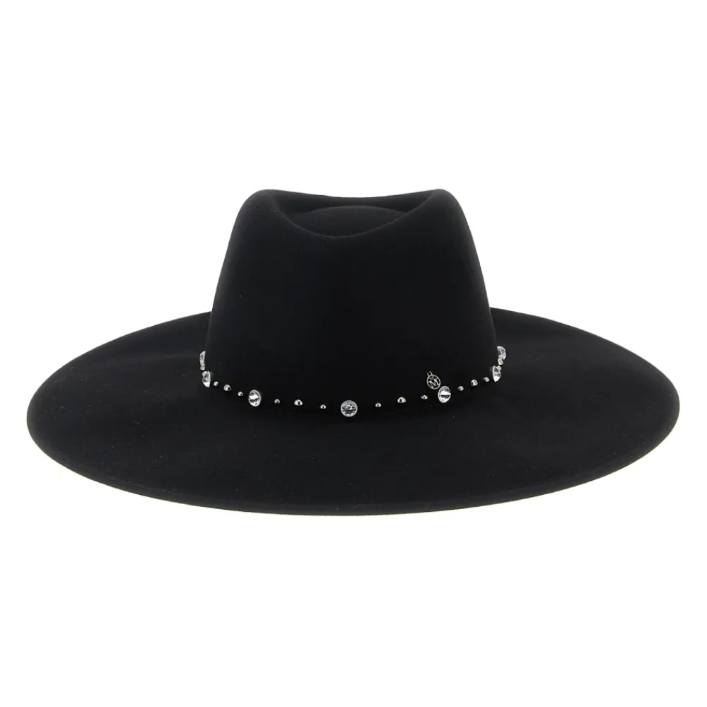 Maison Michel Roy Hat is een wollen fedora met brede rand, geaccentueerd met handgelegde studs en kristallen versieringen. Het voegt een edgy, verfijnde finishing touch toe aan zowel geklede als casual looks. Belangrijkste kenmerken: Zwart | Wol | Niet waterbestendig | Brede rand | Ingedeukte kroon | Handgelegde studs en kristallen versieringen | Kenmerkende Maison Michel logo plaat | Afmetingen en pasvorm: S = 56 cm | M = 58 cm | L = 60 cm | Valt normaal; kies je gebruikelijke maat. | Maten komen overeen met de hoofdomtrek. | Samenstelling & verzorging: 100% wol | Niet waterbestendig. Bewaar uit de buurt van lucht en vocht. Raadpleeg de onderhoudsgids van het merk voor reinigingsinstructies.