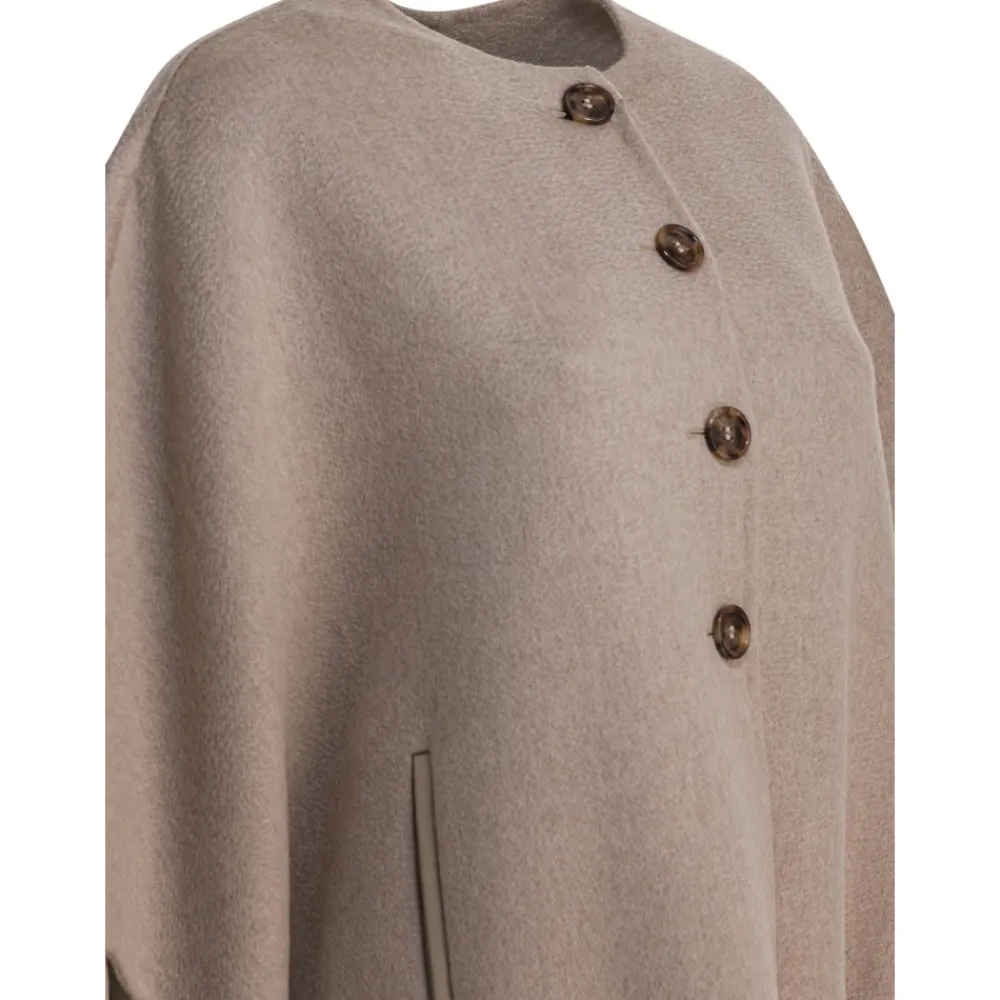 Verrijk je stijl met deze luxueuze MAX MARA cashmere midi cape voor vrouwen. Met een relaxte pasvorm, klassieke ronde hals, wijde kimono-mouwen en een diepe split aan de achterkant voor meer bewegingsvrijheid. Afgewerkt met verticale leren zakken en een chique dubbel drap design.