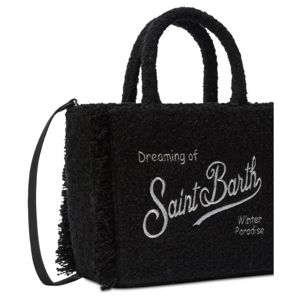 MC2 Saint Barth Colette Tweed is een tweed tote ontworpen voor dagelijks gebruik, die klassieke tweedtextuur combineert met praktische draagopties voor in de stad of in het weekend. Belangrijkste kenmerken: Zwart | Polyester-wolmix | Afneembare en verstelbare schouderriem | Handvatten aan de bovenkant | Binnenzak | Ritssluiting | Tweedtextuur | Geborduurd logo | Afmetingen & pasvorm: 27 x 25 x 14 cm | One size | Samenstelling & verzorging: 70% polyester, 30% wol