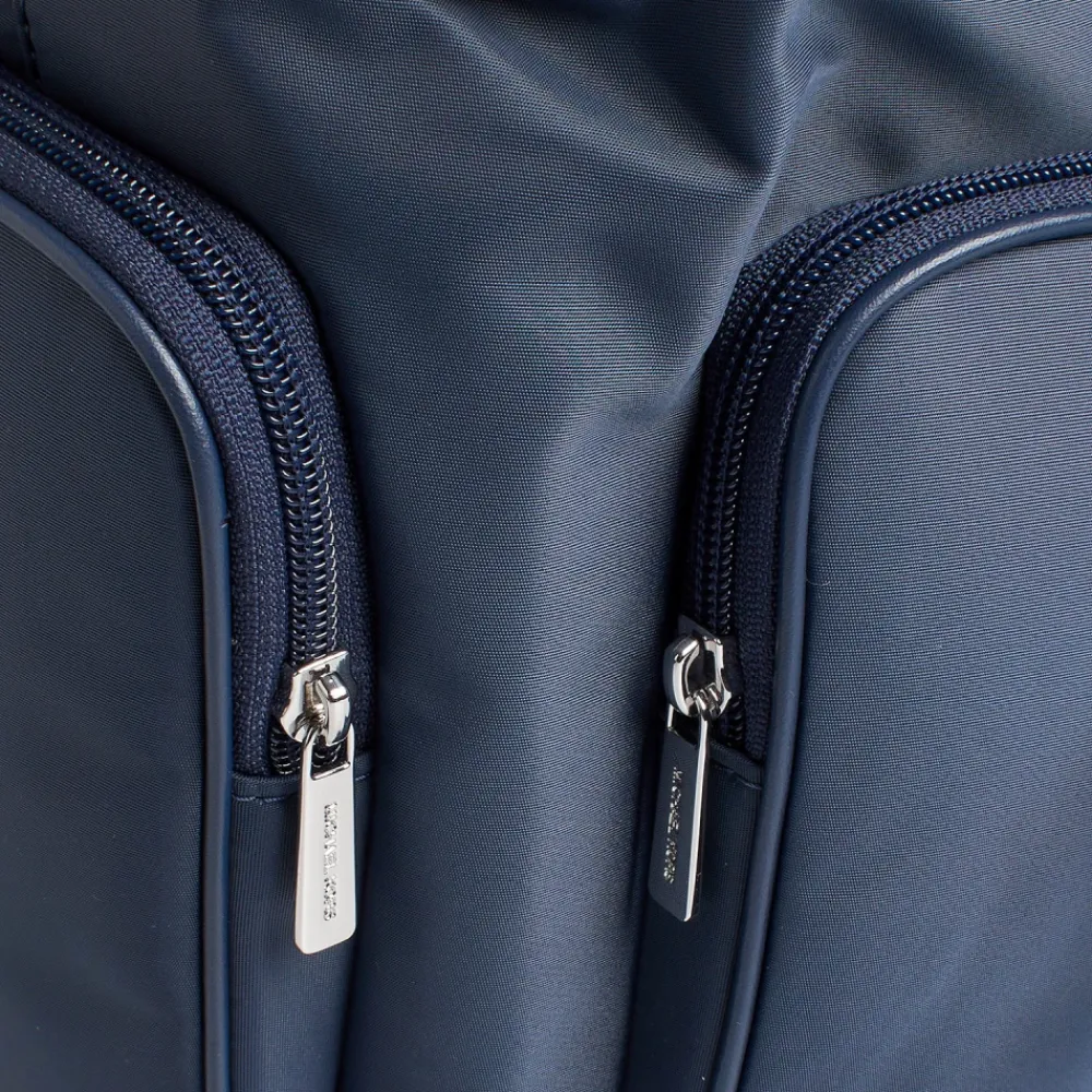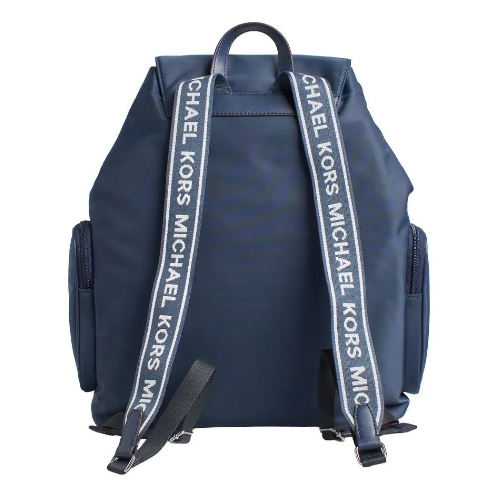 De Michael Kors Khai Large Flap Cargo is een moderne, veelzijdige rugzak die een urban cargo-stijl combineert met behandeld nylon voor dagelijks gebruik in de stad. Ontworpen voor praktische organisatie en gemakkelijke toegang, is hij geschikt voor woon-werkverkeer, de campus en informele uitstapjes in de stad. Belangrijkste kenmerken: Blue | Azul noche | Nylon | Waterafstotende behandeling | Vlekwerende behandeling | Verstelbare schouderbanden | Sluiting met trekkoord aan de bovenkant | Drie ritsvakken aan de buitenkant en één ritsvak aan de binnenkant | Veilige ritssluitingen | Cargo-ontwerp met klep aan de voorkant | Metalen logo-applicatie aan de voorkant | Voering en banden met logoprint | Zilverkleurige hardware | Afmetingen & pasvorm: 35 cm (breedte) x 40,5 cm (hoogte) x 20 cm (diepte) | Samenstelling & onderhoud: Buitenkant: 100% Nylon | Binnenkant: 100% Polyester | Afwerking: 60% Polyurethaan, 20% Katoen, 20% Polyester | Afnemen met een vochtige doek. Vermijd inkt, vet, permanente kleurstoffen en olievlekken, omdat deze onomkeerbaar kunnen zijn. Gekleurde of denim stoffen kunnen kleur afgeven; wees voorzichtig met lichtgekleurde kledingstukken.